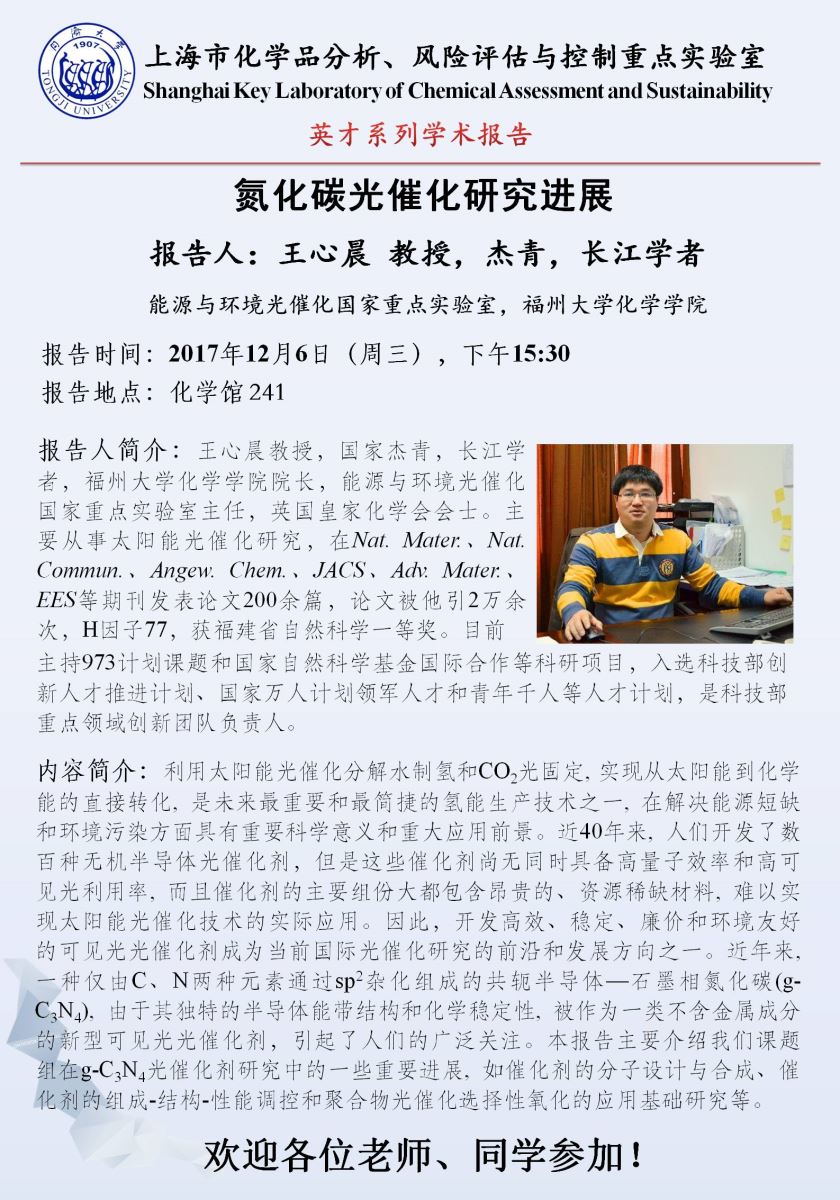 报 告 人:王心晨 教授(国家杰青、长江学者,福州大学)