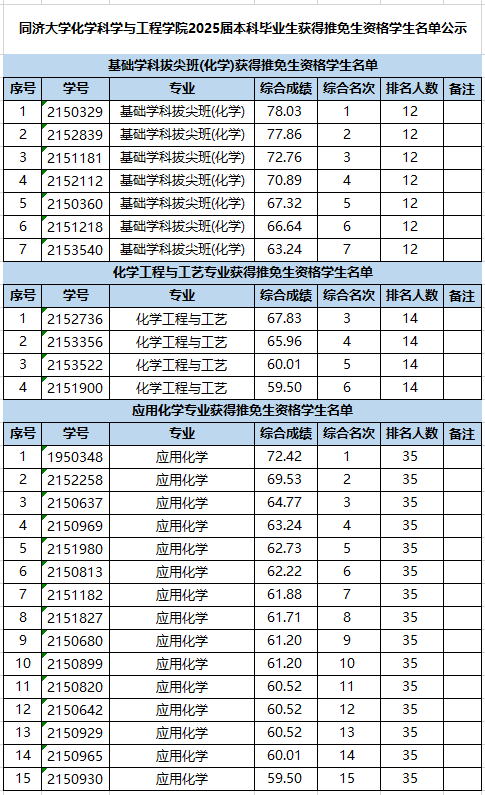 附:2025届本科毕业生获得推免生资格员工名单公示