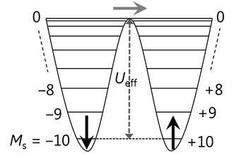 在我们的研究项目中,将利用单分子磁体(SMM)这种新型磁体来实现自旋电子学。SMM 与传统无机磁体结构迥然,通过将不同电子状态的金属离子和有机配体结合在一起,可以控制其电子状态、配体磁场和磁各向异性。例如,作为经典磁体(铁磁性金属)的钴(Co)纳米粒子可降低磁化反转所需的能量,表现为超顺磁性。随着磁化的自发反转,纳米粒子不再具有磁记忆功能。另一方面,由于磁化反转的势垒能(Ueff)是由分子内部的强单轴磁各向异性形成的,因此即使在纳米尺度上,SMM 也能表现为磁体。