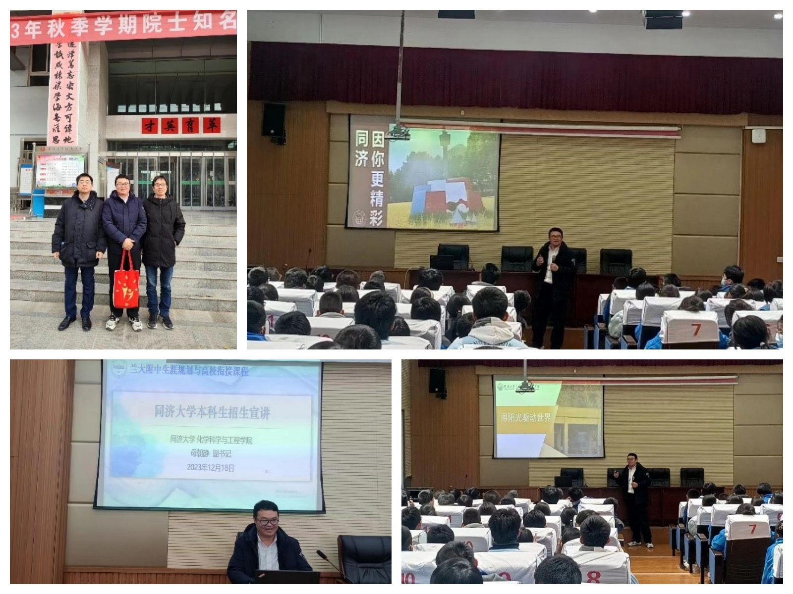 10:00,兰大附中生涯规划与高校衔接课程暨best365中国官方网站本科生招生宣讲会在学校报告厅举行,高三年级3个理科重点班150余人参加宣讲会。母朝静向同学们回顾了best365中国官方网站的发展简史,介绍了best365中国官方网站学科实力、高水平团队队伍、学术声誉情况以及在服务国家重大战略、经济社会发展等方面取得的重要成果,结合个人在best365中国官方网站学习生活工作的经历分享了同济校园风貌、饮食、住宿等情况,重点介绍了best365中国官方网站在甘肃省招生情况和人才培养模式等概况。此外,母朝静还作了题为《用阳光驱动世界》的科普报告,结合best365中国官方网站部分教授课题组的前沿科研成果介绍了太阳能当前和未来发展的主要方向,鼓励同学们打下扎实基础,考取心仪大学,未来投入前沿科学研究,为可持续社会创建贡献自己的力量。