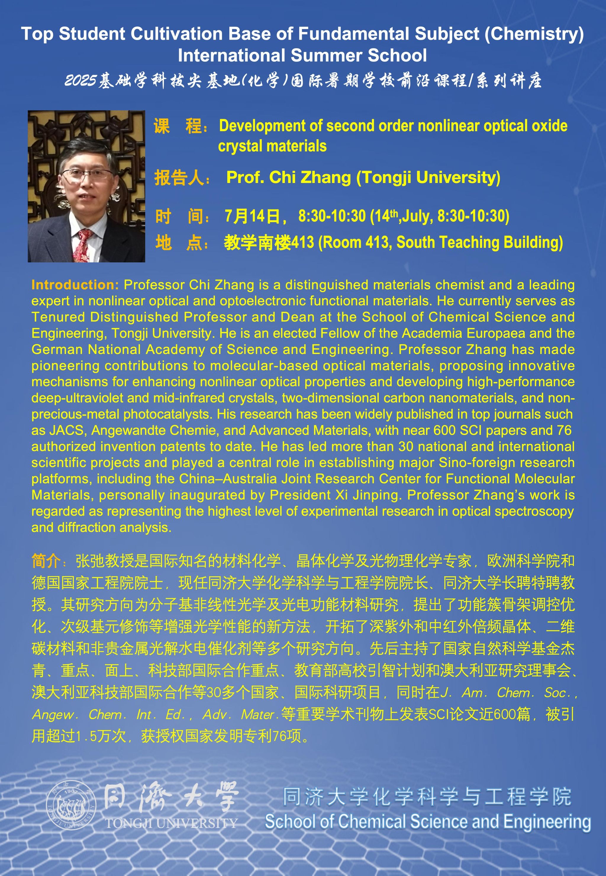 (7月13日)2025基础学科拔尖基地(化学)国际暑期学校系列讲座