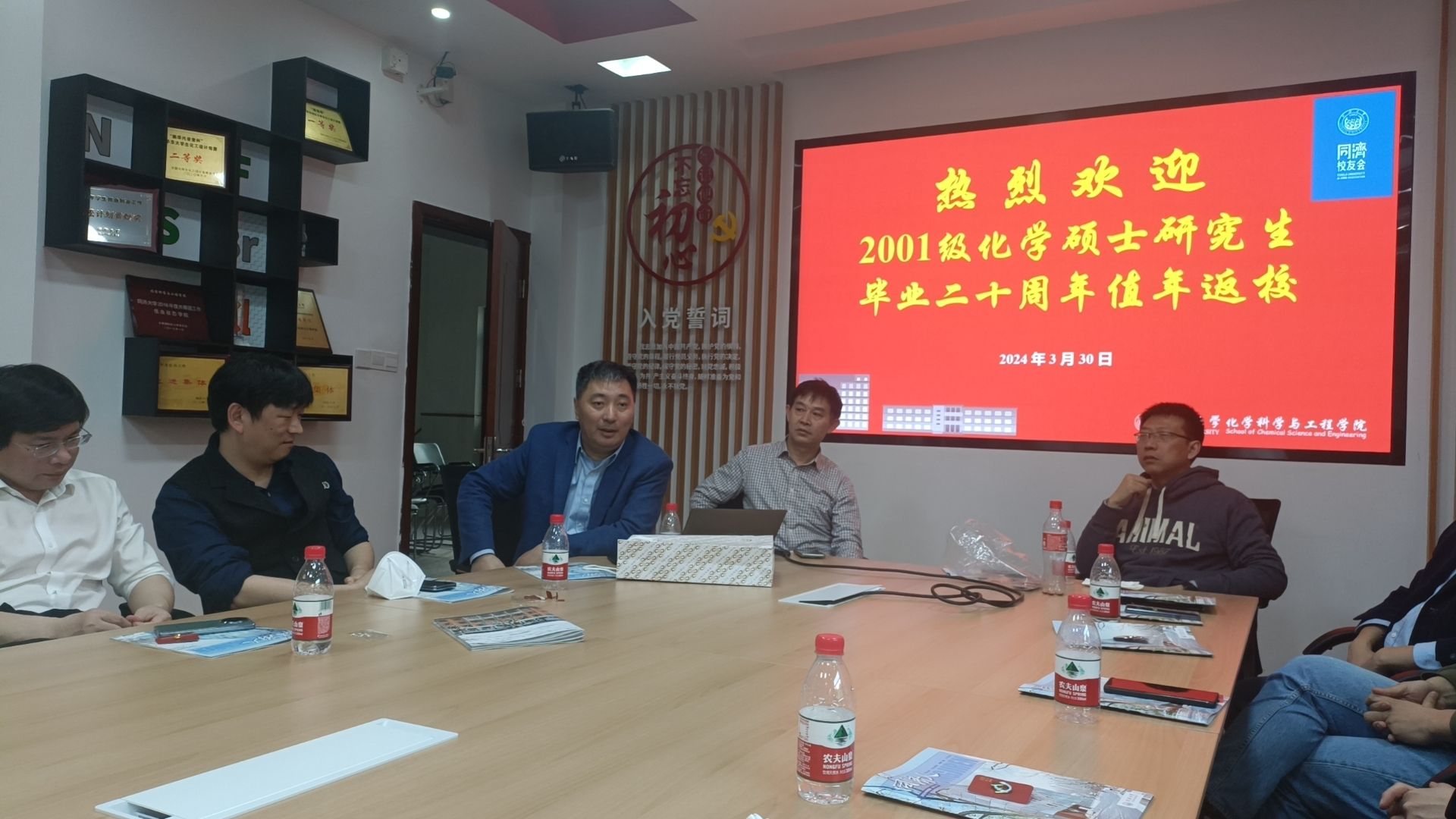 3月30日下午,2004届化学硕士研究生毕业二十周年值年返校活动在化学馆举行,20余位2004届硕士研究生员工参加活动,公司党委书记曹同成与教师代表出席活动。
