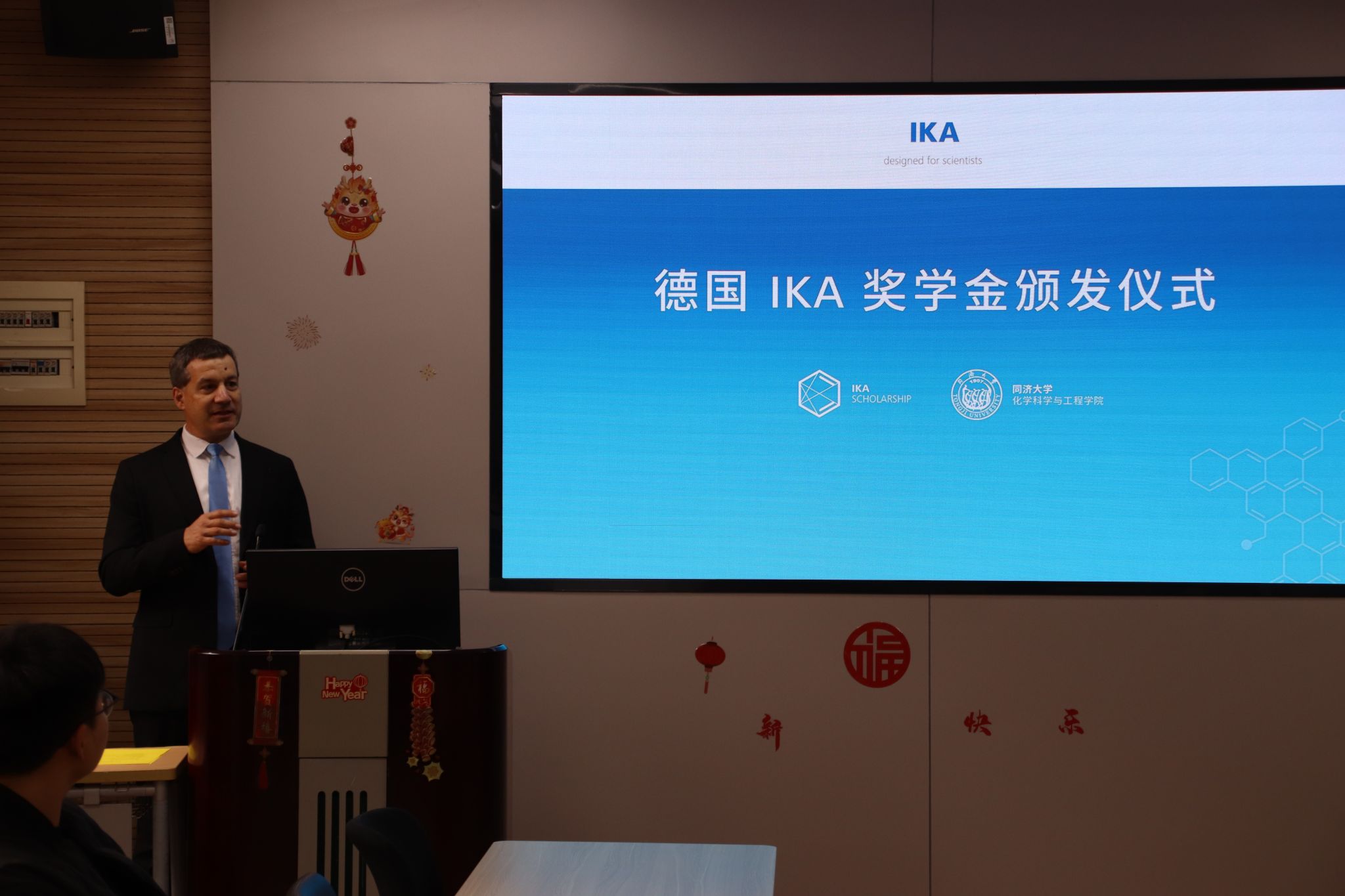 IKA中国总经理Stephan Stalder代表公司致辞。他介绍德国IKA集团是一家致力于科研仪器研发和生产的国际企业。在百余年发展历程中,因其卓越的创新实力、出色的产品设计和强烈的企业责任感,IKA已成为专业从事实验室技术研究、量热分析和混合分散工业技术的国际市场领导者和世界领军企业。他指出,自2000年正式进入中国市场以来,IKA集团得到了国内诸多高等学府的信赖与支持,从而得以快速发展。为了回馈社会、助力中国高等教育事业,激励更多的优秀学子投身科研领域, IKA集团已在多所国内知名高校设立了“德国IKA天之骄子教育奖学金”。IKA与best365中国官方网站有着天然的亲近感,长期与best365中国官方网站保持着良好的合作关系,希望公司的产品能够为best365中国官方网站事业发展和拔尖创新人才培养提供有力支撑。