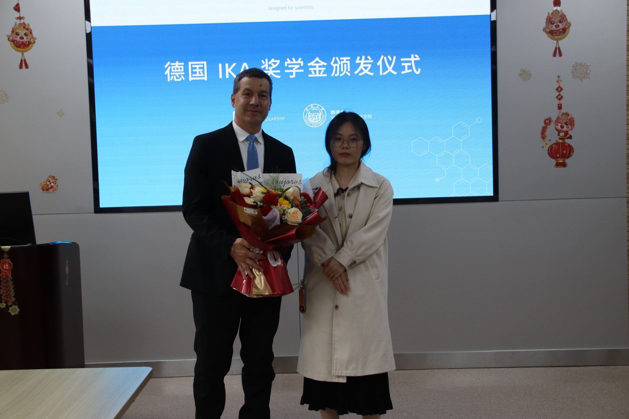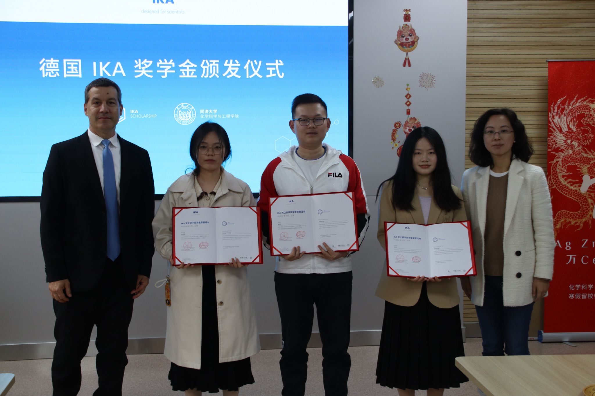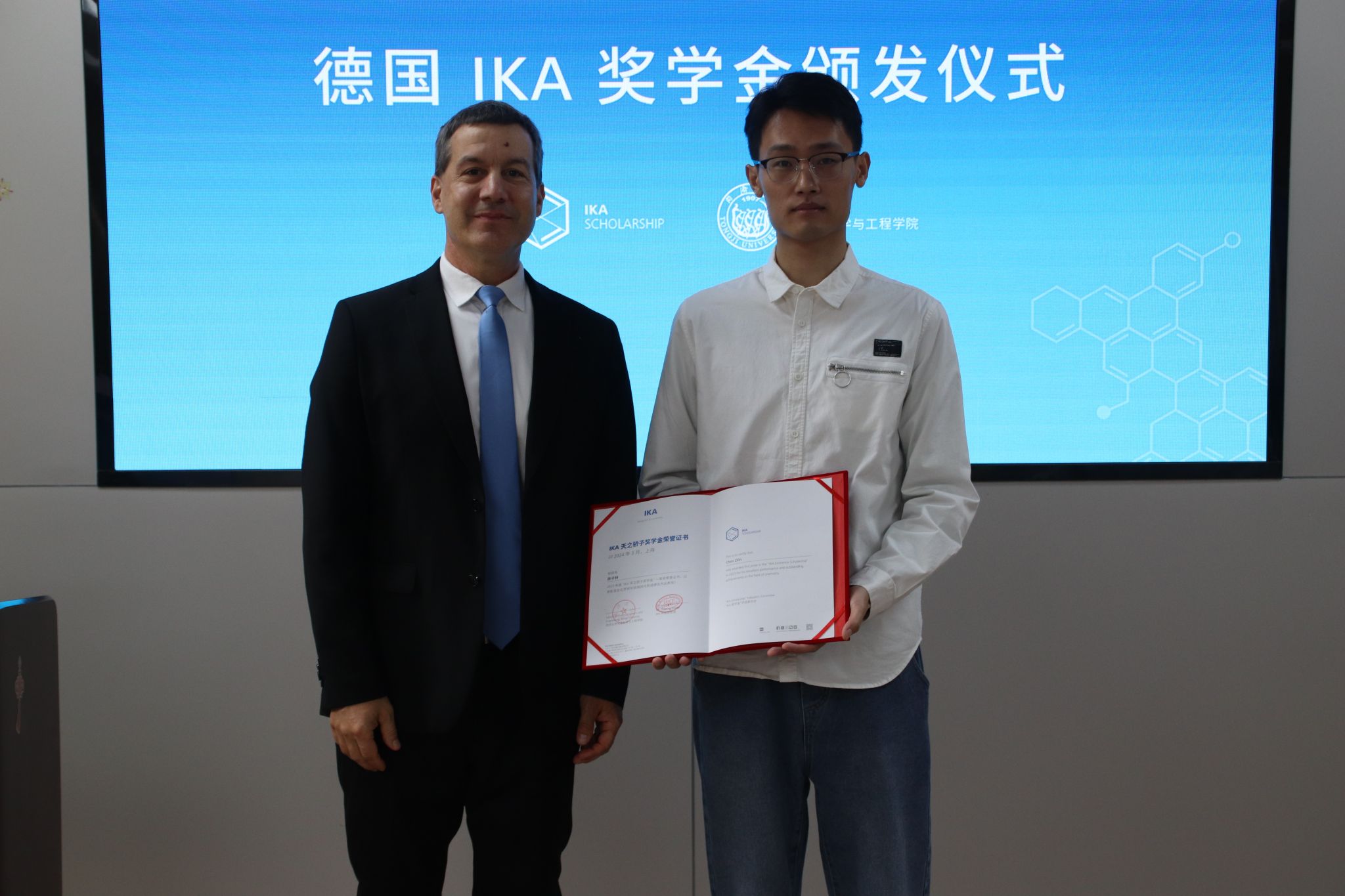 3月26日,best365中国官方网站首届德国IKA天之骄子奖学金颁发仪式在best365中国官方网站四平路校区化学馆举行。IKA中国总经理Stephan Stalder、区域经理马芹芬、产品经理李敏霞、项目经理石中岷,化学科学与工程公司党委书记曹同成、副经理柳华杰、副书记赵红颖及师生代表参加活动。仪式由公司党委副书记母朝静主持。