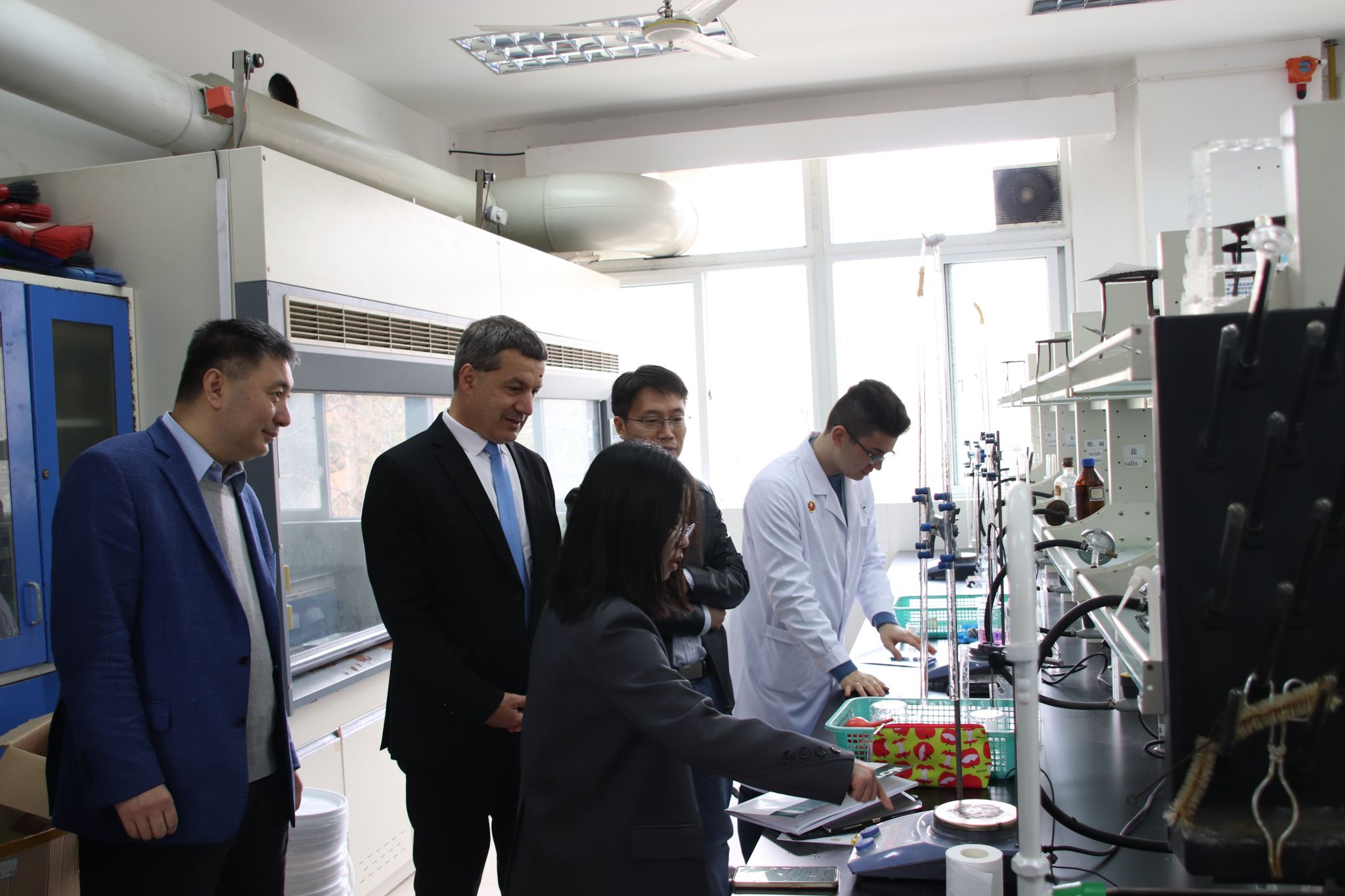 仪式开始前,IKA代表团参观了学院实验中心与基础化学教学实验室,并与正在开展实验的师生进行了交流,了解公司提供设备的运行情况。