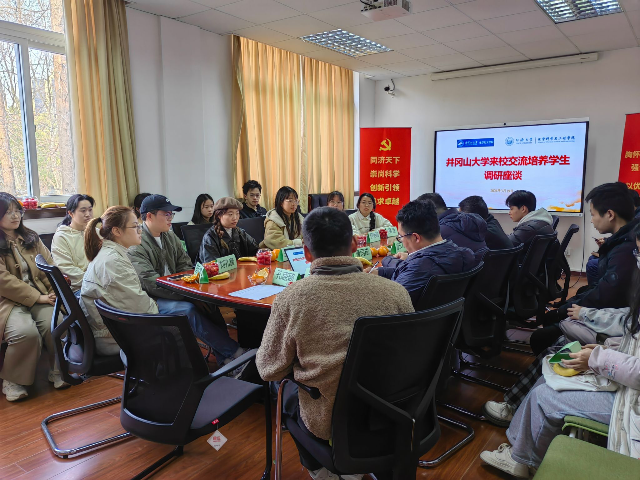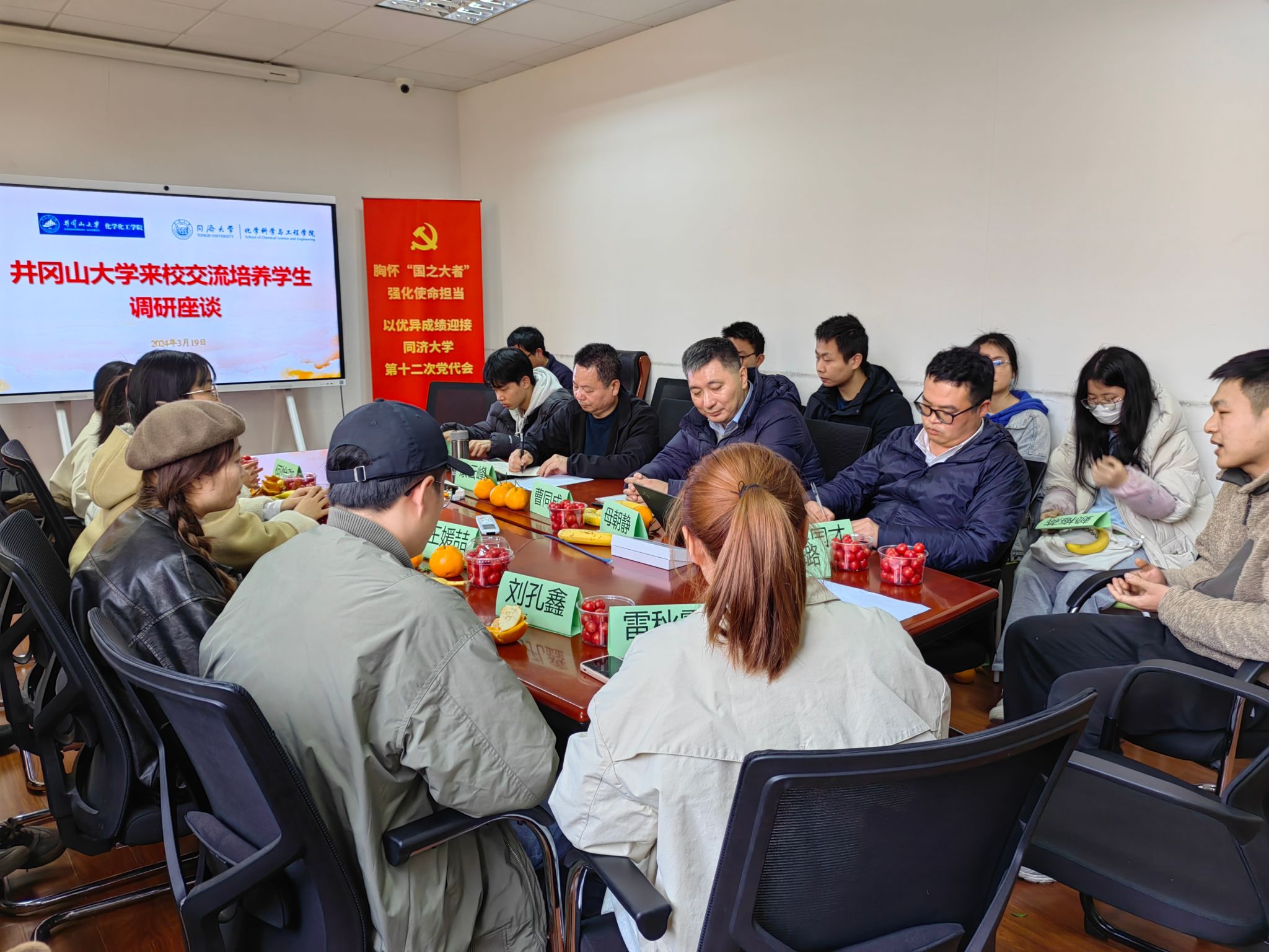 3月19日下午,井冈山大学来校交流培养员工调研座谈会举行,井冈山大学化学化工公司党委书记康云峰出席并致辞,党委书记曹同成出席并讲话。在公司学习工作的井冈山大学员工、博士研究生、硕士研究生和联合培养本科生二十余人参加了座谈会。会议由公司党委副书记母朝静主持。