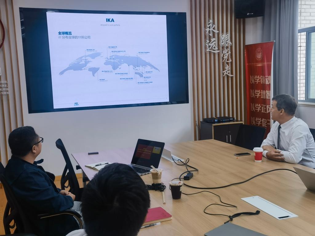 柳华杰代表学院向IKA的嘉宾介绍了学院发展历史和学科发展现状,段辉介绍了工科化学实验示范中心平台建设与运行情况。马芹芬介绍了IKA公司的发展历史和产品情况,IKA 集团是实验室前处理, 量热分析, 混合分散工业技术的市场领导者. 磁力搅拌器, 顶置式搅拌器, 分散均质机, 混匀器, 恒温摇床, 研磨机, 旋转蒸发仪, 加热板, 恒温循环器,量热仪, 实验室反应釜等相关产品构成了IKA实验室分析的产品线, 而工业技术主要包括用于规模生产的混合设备, 分散乳化设备, 捏合设备, 以及从中试到扩大生产的整套解决方案. 集团总部位于德国南部的Staufen, 在美国,中国, 印度,马来西亚, 日本, 韩国,巴西等国家都设有子公司。双方交流了未来深入合作的方向和可能性,比希望通过深度交流,相互促进。