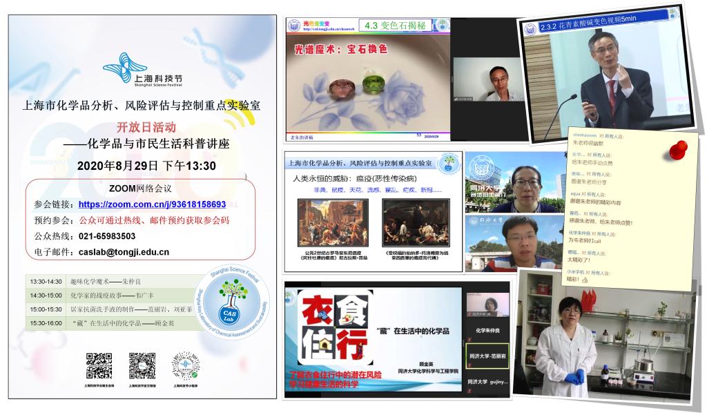 日前,20余组市民家庭带着这些问题通过邮件/热线预约,参与到了上海市化学品分析、风险评估与控制重点实验室的在线开放日活动当中,先后聆听了《趣味化学魔术》、《化学家的战疫故事》、《居家抗菌洗手液的制作》和《“藏”在生活中的化学品》等四场精彩的科普报告。