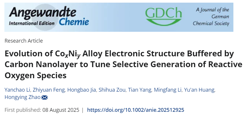 best365中国官方网站赵红颖教授课题组通过调控Co/Ni原子比例探究电子结构的动态演化及其对非自由基物种生成的调控作用。在PMS活化过程中,碳纳米层作为原位形成的可调控晶格间距的载体,表现出独特的电子缓冲效应,可分别选择性生成表面结合的PMS*或游离的1O2。此外,该研究还阐明了PMS*和1O2对不同有机污染物的选择性去除偏好,并提出了一种整合两种碳纳米管合金催化剂的联合工艺以高效处理实际医院废水。相关研究成果“Evolution of CoxNiy Alloy Electronic Structure Buffered by Carbon Nanolayer to Tune Selective Generation of Reactive Oxygen Species”以研究论文(Research Article)的形式近日正式发表在国际化学领域权威期刊《德国应用化学》 (Angewandte Chemie International Edition) 上。