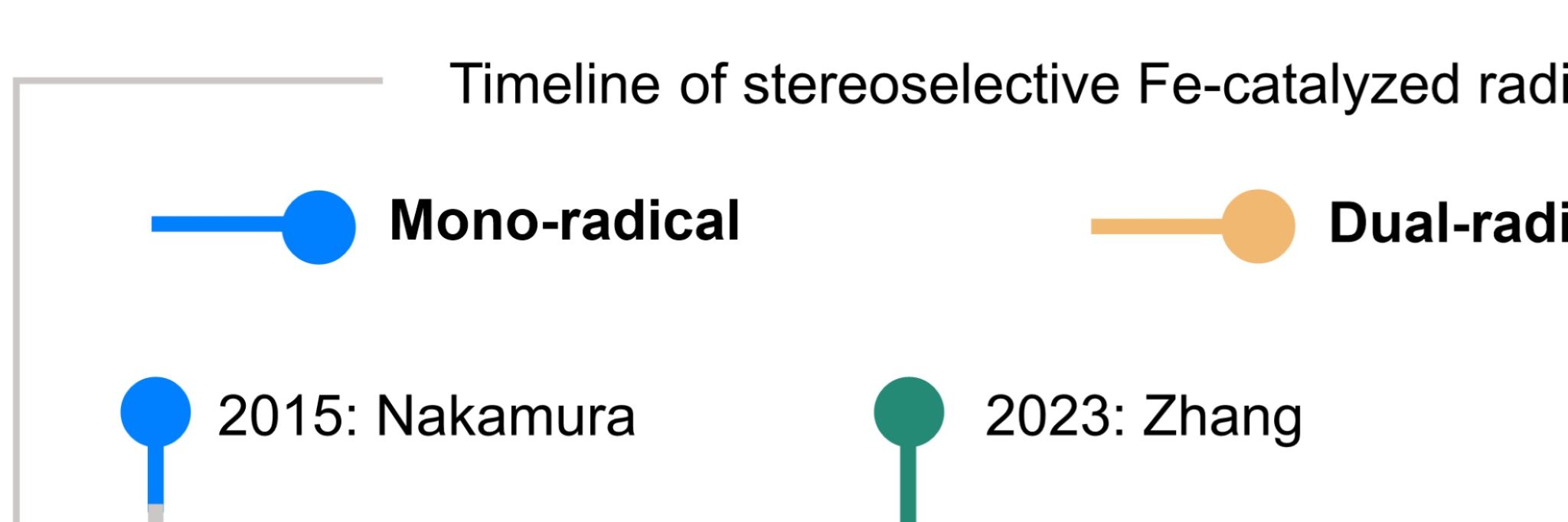 碳—碳成键反应是有机合成化学的核心内容之一,对于复杂分子骨架的构建具有重要意义。近年来,随着高饱和度三维分子结构在药物化学和材料化学等领域受到广泛关注,利用自由基过程实现立体选择性碳—碳成键逐渐成为合成化学的重要研究方向。铁作为地壳中储量丰富、毒性低、环境友好的丰产金属,在可持续催化领域具有独特优势。然而,由于自由基具有瞬态性强、反应路径复杂等特点,同时铁催化体系往往伴随着多变的氧化态、自旋态和配位模式,如何在铁催化自由基反应中同时实现高反应活性与高立体选择性,仍然是该领域面临的重要挑战。