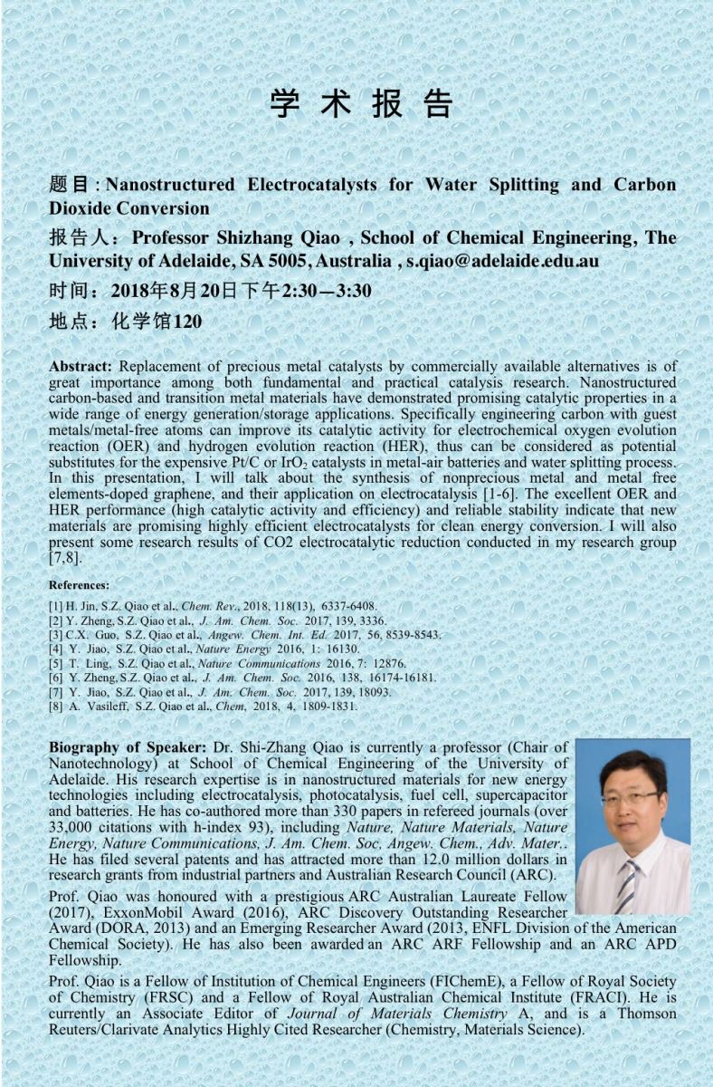 (2018年8月20日)Nanostructured Electrocatalysts for Water Spliting and Carbon Dioxide Conversion