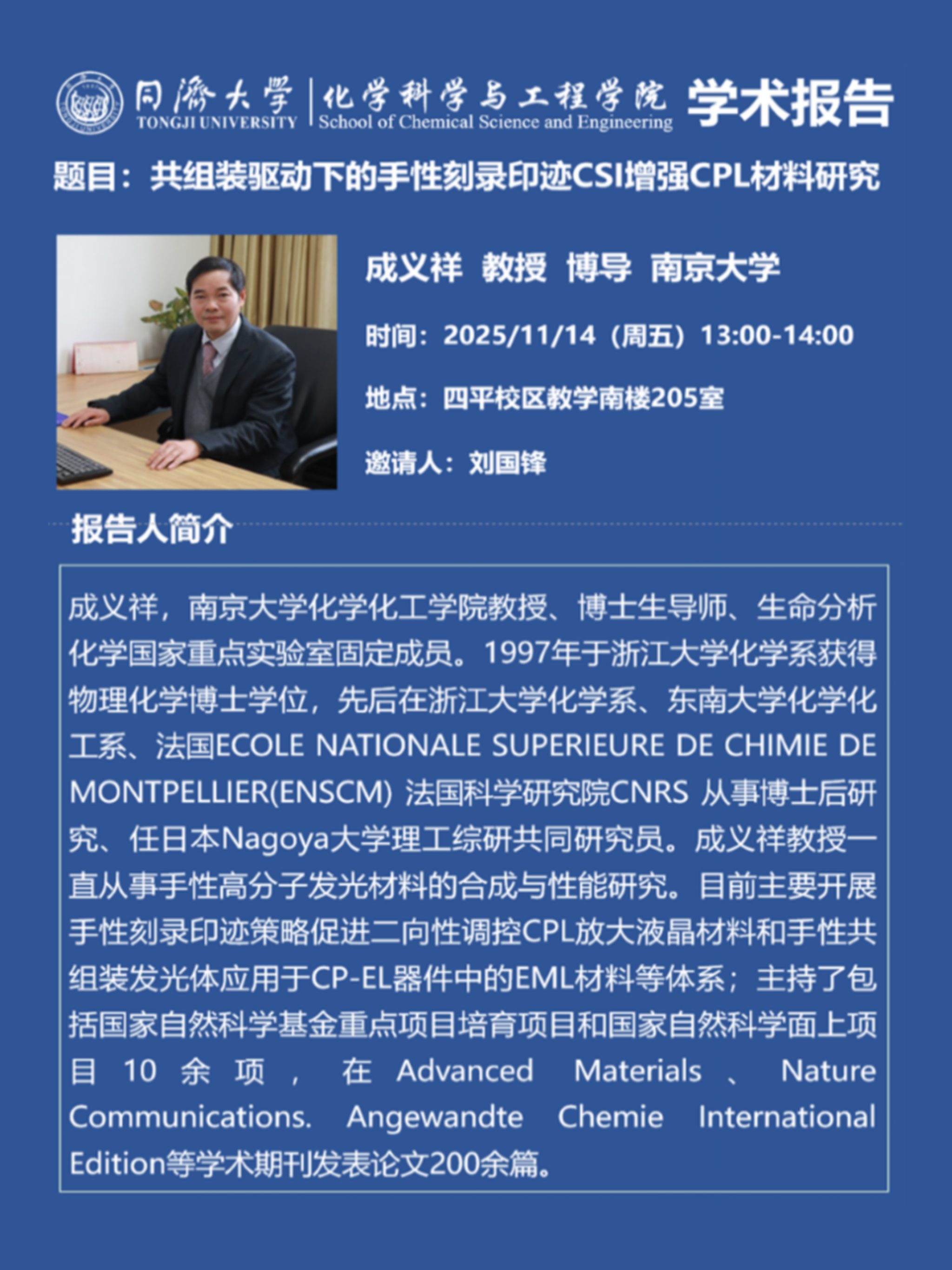 (11月14日)共组装驱动下的手性刻录印迹CSI增强CPL材料研究