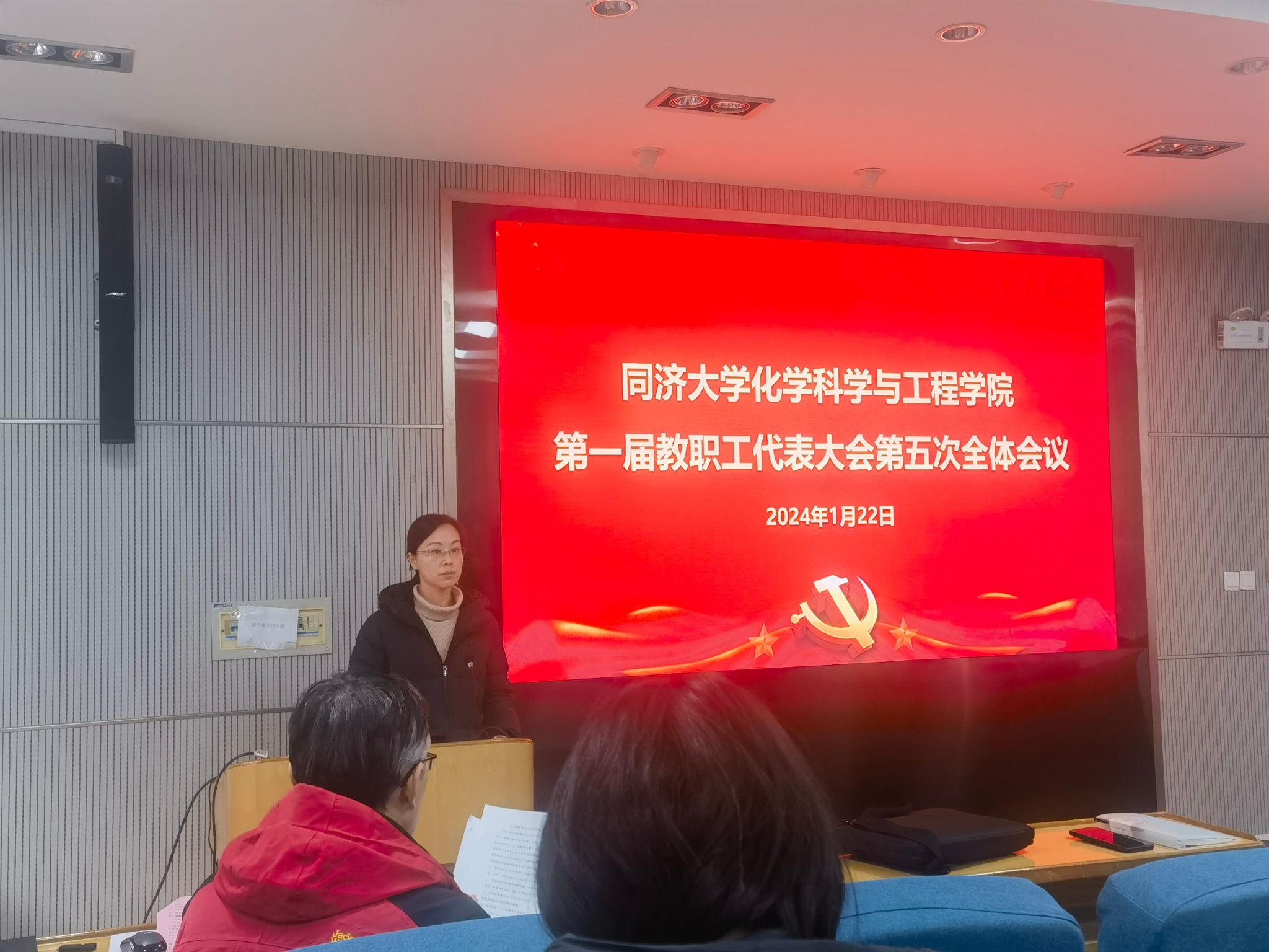 1月22日,best365中国官方网站第一届教职工代表大会第五次会议在化学馆报告厅召开。会议全面贯彻落实党的二十大精神,回顾总结学院过去一年的发展成绩,学习学校第十二次党代会精神并部署落实学院工作任务,学院教职工代表25人出席会议,公司党委副书记、工会主席赵红颖主持会议。
