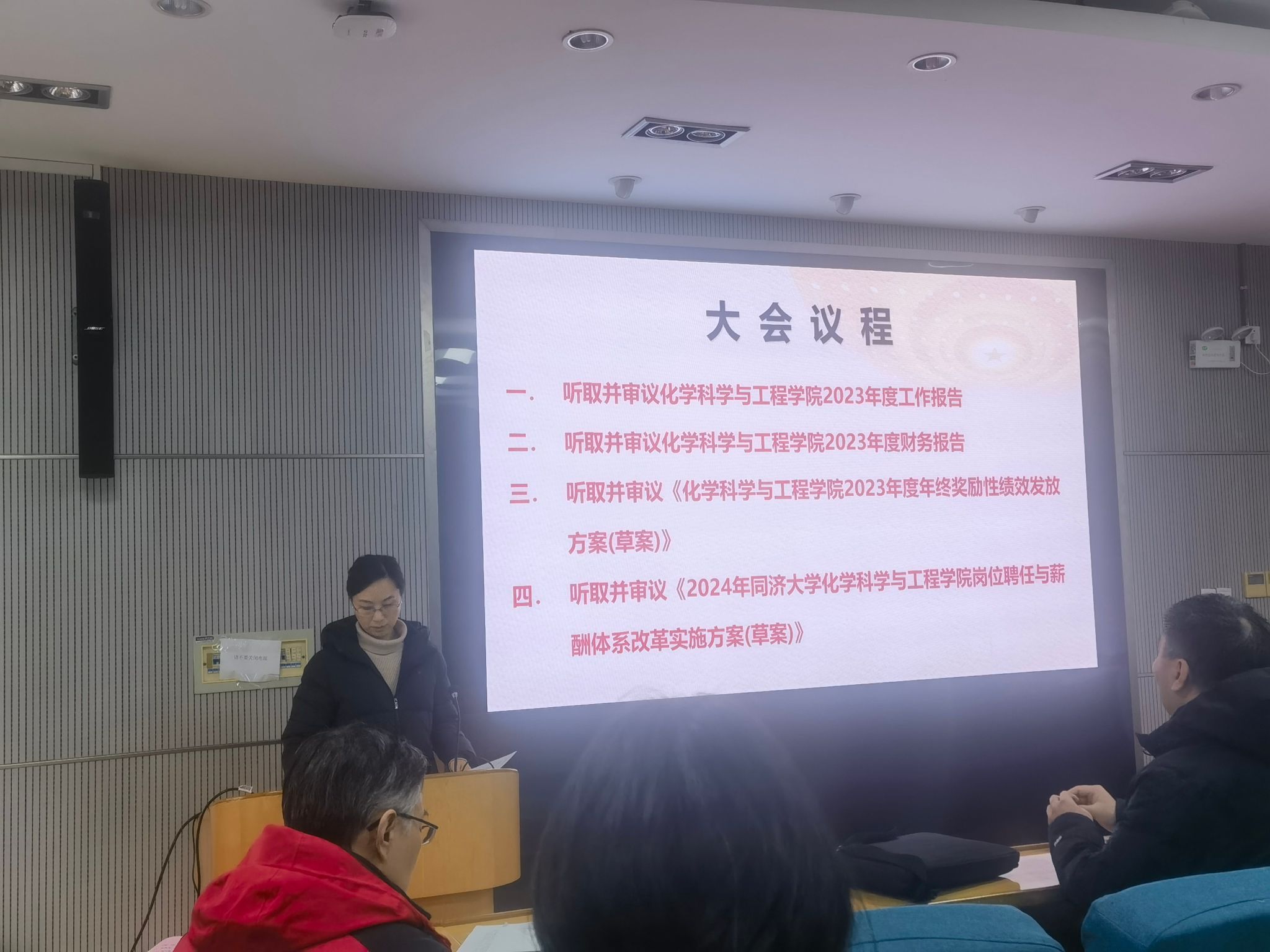 会议听取了经理张弛代表学院所作的《best365中国官方网站2023年工作报告》。张弛报告了学院2023年工作情况,提出了2024年工作要点建议。会议还听取了张弛所作的《学院2023年财务报告》《学院2023年度年终奖励性绩效发放方案》《2024年best365中国官方网站岗位聘任与薪酬体系改革实施方案》等报告。