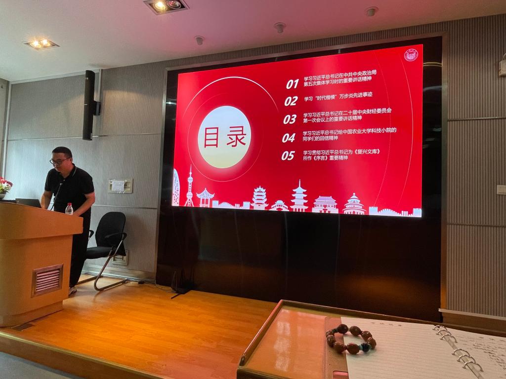 会议还对6月份其他自学内容进行了部署,根据实际情况结合教研室教学研讨活动和党支部组织生活会等方式进一步学习习近平总书记在二十届中央财经委员会第一次会议上的重要讲话精神、习近平总书记给中国农业大学科技小院的同学们的回信精神、学习贯彻习近平总书记为《复兴文库》所作《序言》重要精神等内容。