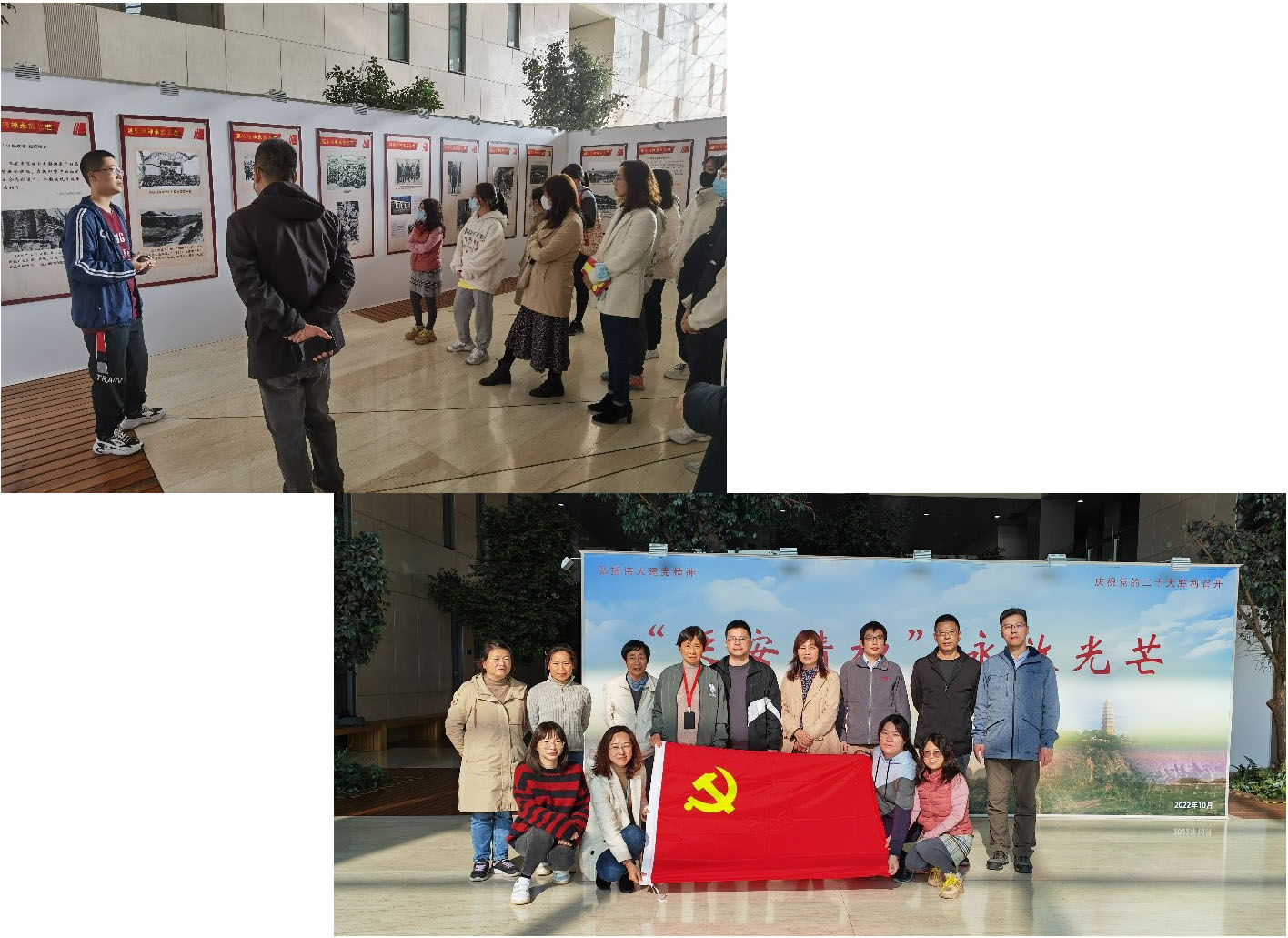 随后,支部全体党员移步至best365中国官方网站衷和楼一楼,参观了“延安精神”永放光芒主题展。在展览中,大家跟随着讲解员的声音,从延安根据地的建立、西安事变、国共合作……一点一点回顾了我党艰苦奋斗的光辉历史,大家更加深刻地感悟不忘初心、坚定不移全面从严治党的重要性。