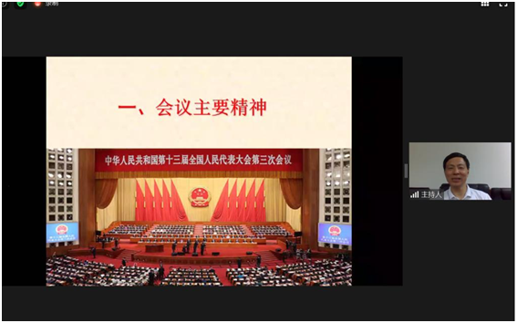 张雄教授首先向大会传达了此次两会主要会议精神,对政府工作报告、人大常务委员会工作报告、最高人民法院工作报告、最高人民检察院工作报告进行了详细的解读,对此次会议通过的《民法典》及国际形势、两岸关系等各类热点问题也谈了自己的体会。此外,张雄教授还在报告最后准备了两会花絮与剪影,分享了防疫形势下他参加全国两会的见闻和体会。