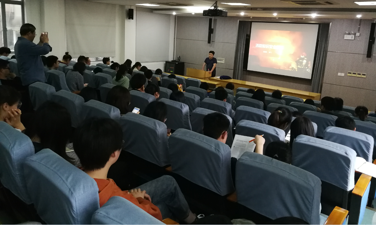 公司举办消防安全知识讲座与逃生演习活动 4月9日下午,学院安全教育讲座举行,邀请保卫处消防科韩飞老师向师生做消防知识安全培训。公司2018级博士、硕士研究生、2019级春季入学博士生及近年来新进教师近百参加了讲座,副经理刘明贤参加并主持会议。