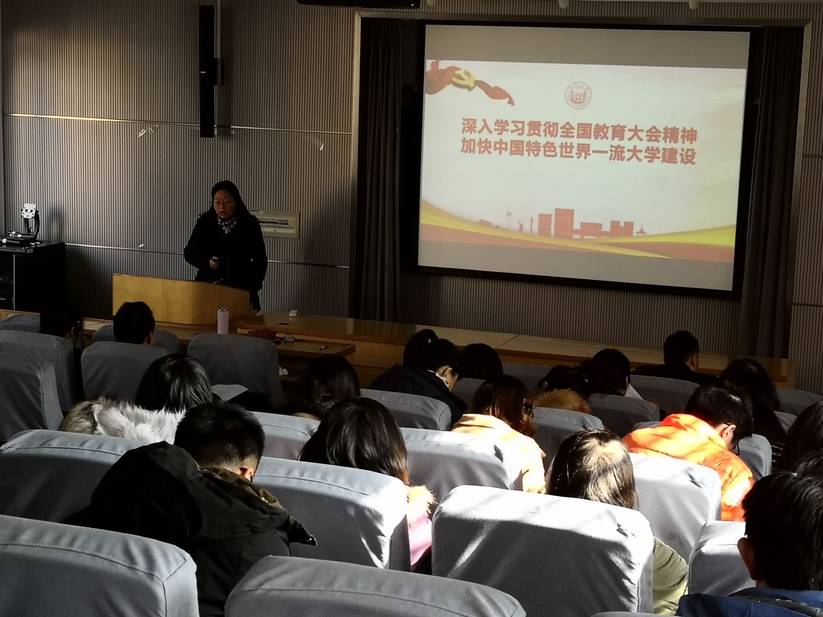 12月18日下午,全院教师党员大会在化学馆举行,公司党委副书记(主持工作)杨晓杰为大家讲专题党课,主题为《深入学习贯彻全国教育大会精神 加快中国特色世界一流大学建设》。
