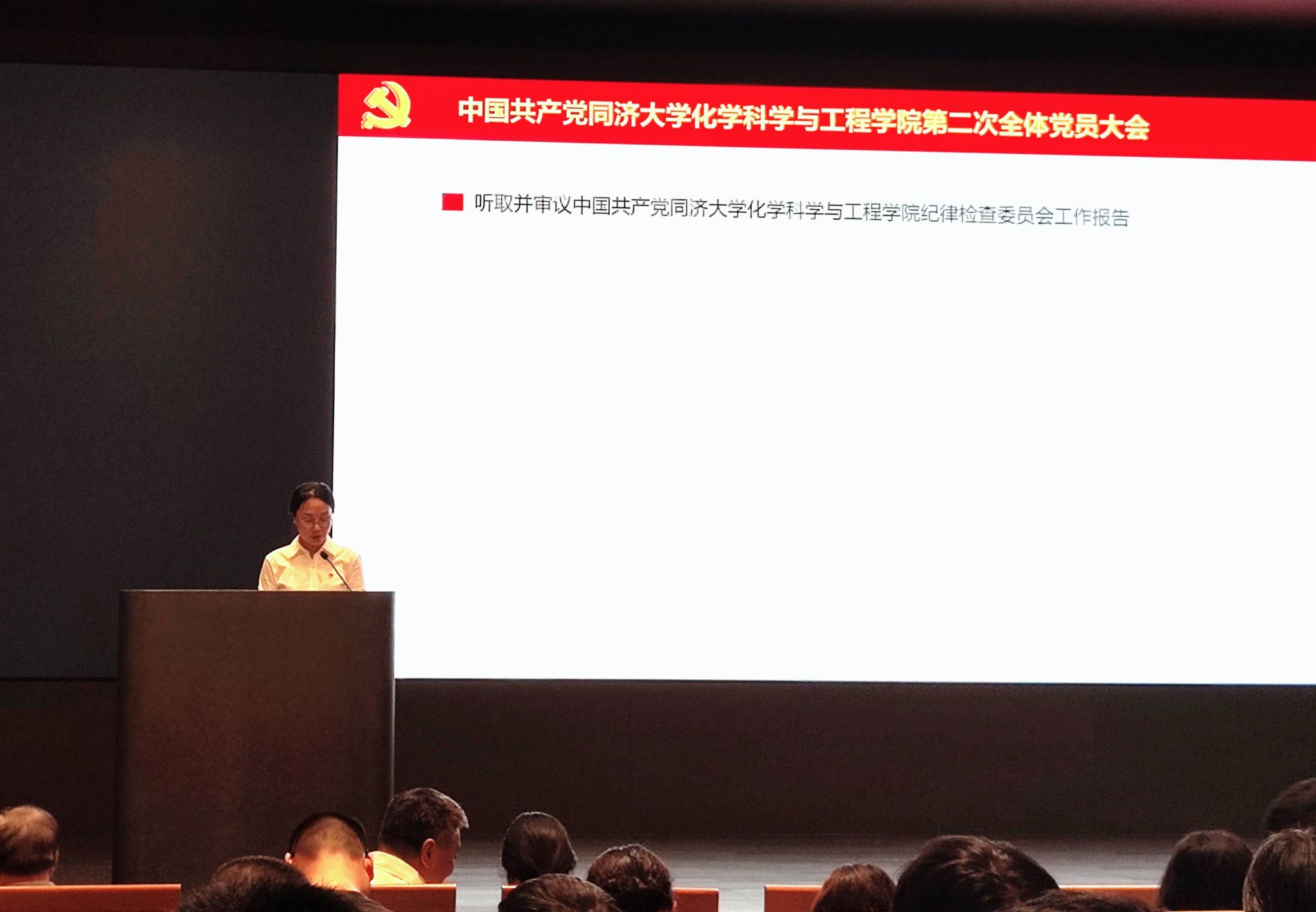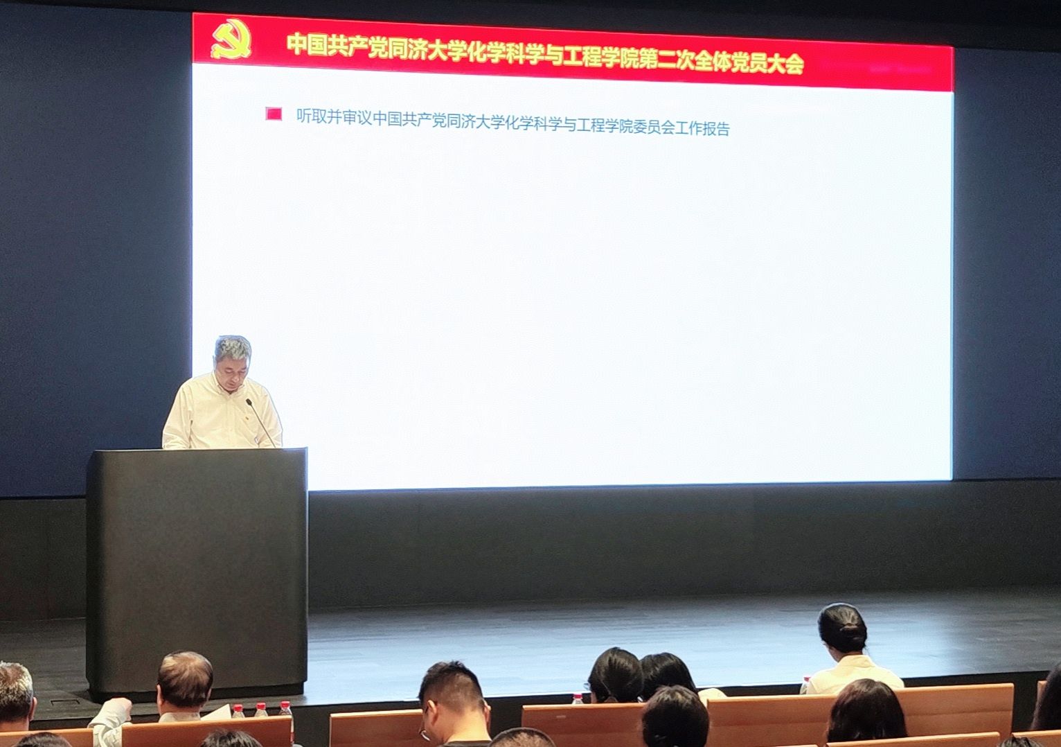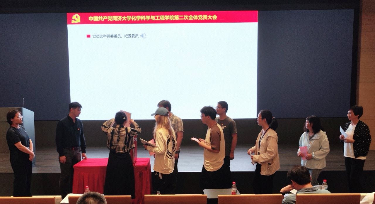 在雄壮激昂的国歌声中,中国共产党best365中国官方网站第二次全体党员大会正式召开。曹同成同志代表中共best365中国官方网站第一届委员会向大会作题为《坚守初心凝聚合力,肩负使命培育英才 全力推进同济特色世界一流工科化学建设》的工作报告。报告总结了学院第一次党代会以来的党委工作情况:一是强化理论武装,筑牢思想根基;二是聚焦中心工作,推动学院发展;三是夯实基层党建,发挥组织优势;四是践行宗旨意识,服务师生群众;五是深化巡视整改,建立长效机制。报告总结了需要今后坚持和发扬的基本经验,同时,还规划了学院未来发展的主要任务:一是聚焦立德树人,打造育人品牌,提升育人质量;二是加强制度建设,提升治理效能,推进治理现代化;三是凝练学科方向,促进交叉融合,推动学科发展。曹同成同志就中共best365中国官方网站委员会党费收缴、使用和管理情况向全体党员做了报告。