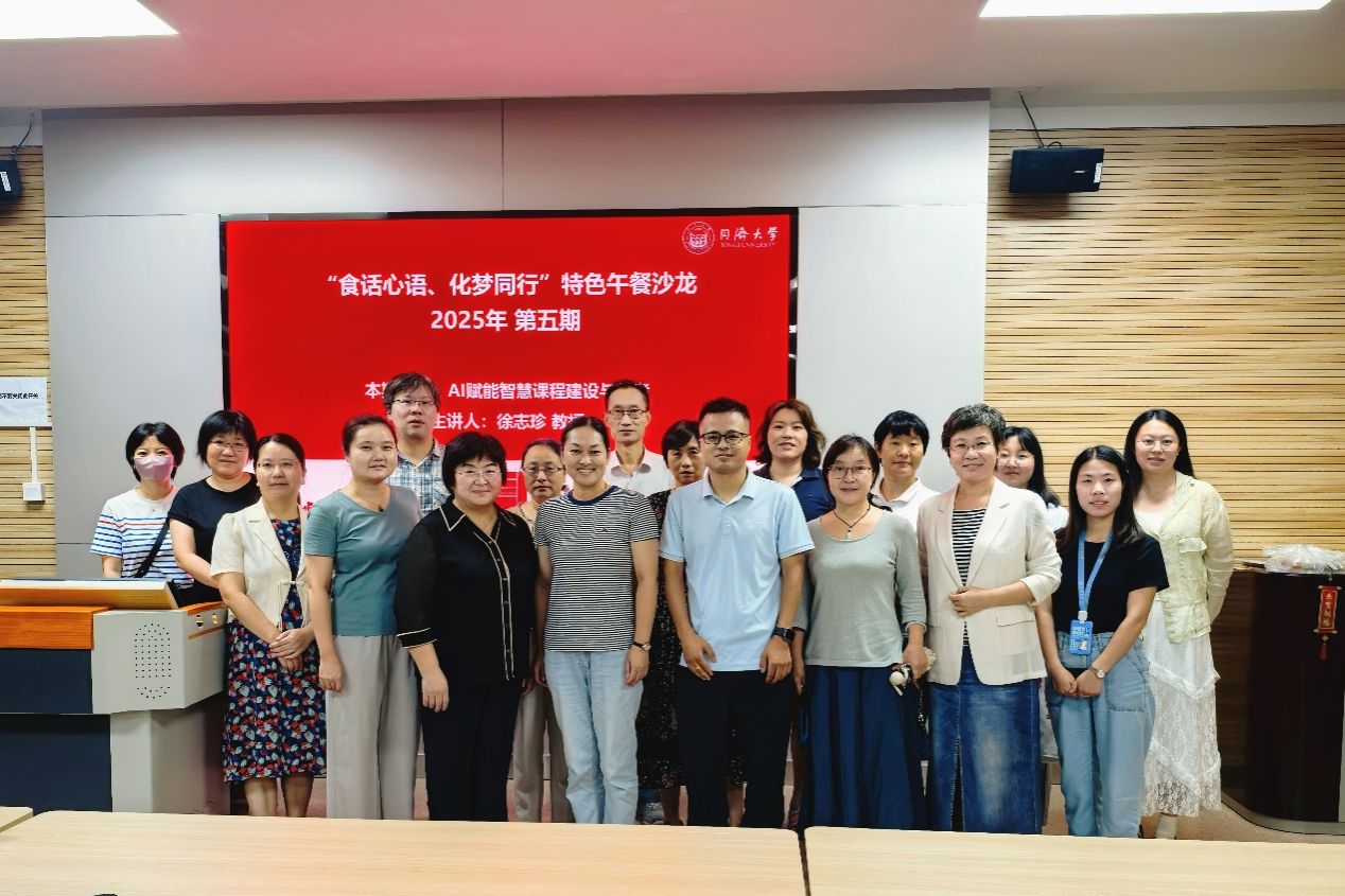 人工智能赋能公司产品,“以智助教、以智助学”是目前广大教师关注的热点话题。为帮助教师更好地认识和建设智慧课程,2025年9月25日中午,学院工会在化学馆120报告厅举办2025年“食话心语、化梦同行”第五期特色午餐沙龙活动。本次沙龙特别邀请华东理工大学化学与分子工程学院徐志珍教授,带来题为 “AI赋能智慧课程建设与思考” 的专题讲座,共吸引31位教师积极参与。
