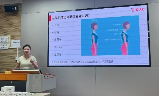 此次公司邀请了高级健康培训师、美国运动医学会运动生理师、上海市卫健委抗议课程研发者岳静老师,开展了有关“一平米工位健康——办公室体态纠正和微运动修复”的主题讲座活动,岳老师就办公室里常见的伏案工作姿势所引起的高低肩、脖子前倾、头部后仰等体态问题及其背后的深层次原因等进行了详细介绍,向大家科普日常的健康行为理论,让老师们形成对于体态问题的意识和日常行为的改变。