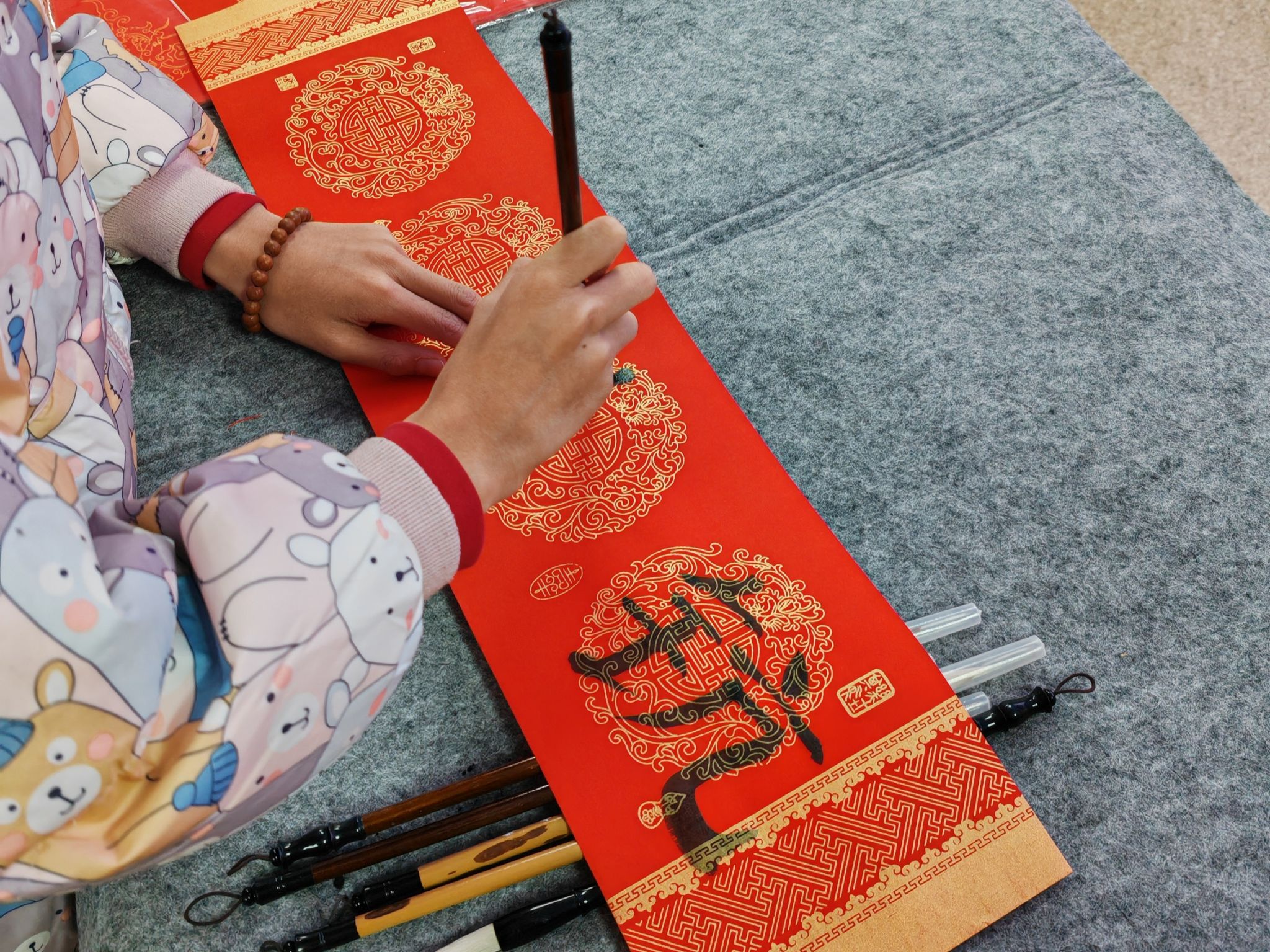 曹同成、张弛、母朝静等老师们分别为留校同学送上学校、学院精心准备的大礼包。沉甸甸的礼包,沉甸甸的爱,有初次寒假留校的同学感慨地说:“这是我在同济这么多年来第一次寒假期间留校,没想到学校、学院准备了这么多礼包,还有院领导们逐个关心慰问,让我十分感动!我一定会好好规划好寒假,不荒废时光。”而后,留校员工和到场的老师们通过制作灯笼,用化学元素写春联的方式展示化学人独有的浪漫和迎新春仪式。