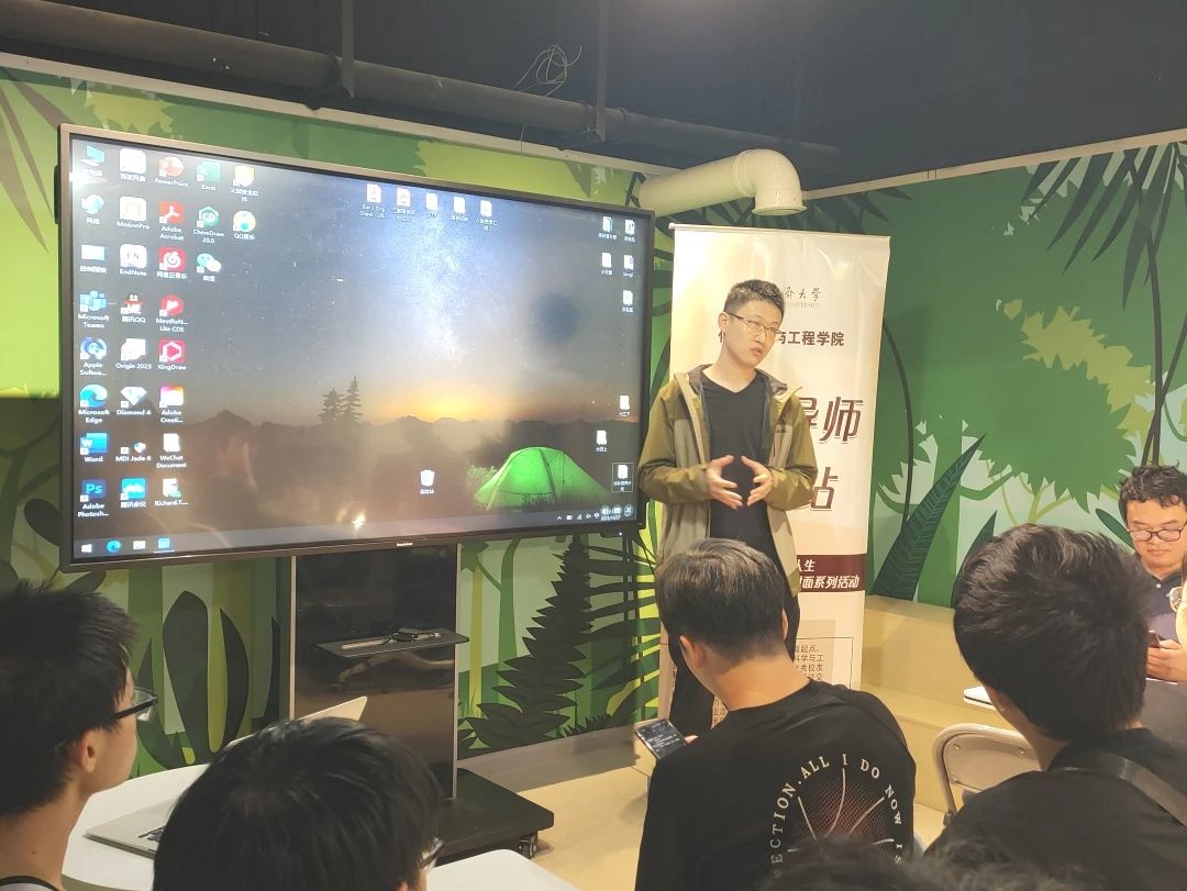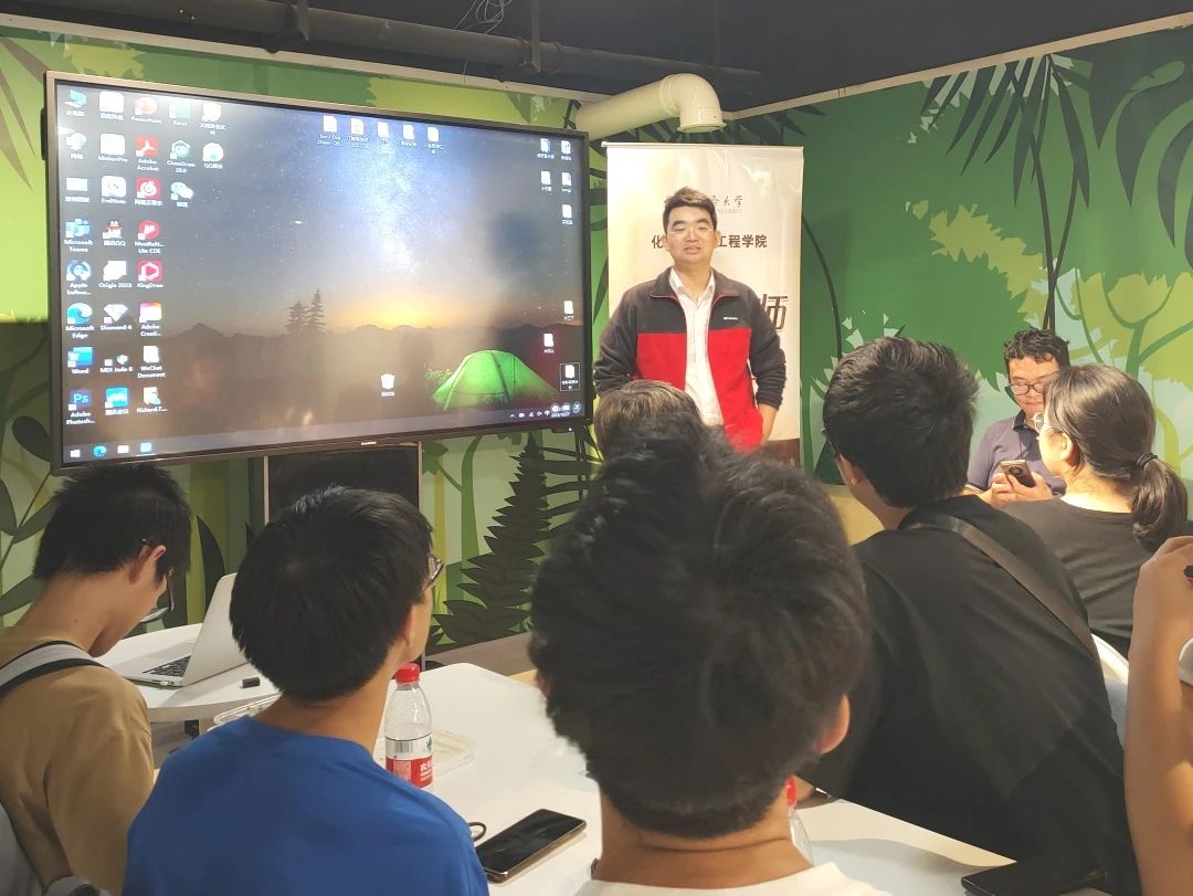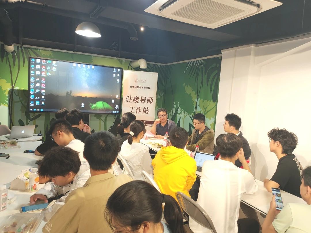 活动之初,母朝静热情地欢迎师生参加这次的活动,并首先邀请两位班主任分享个人求学经历、目前研究方向及对化学专业学科的未来发展方向的认识等,为同学们适应老员工活、规划个人发展方向提供指导和帮助。许茂桐从自己对天文学的兴趣谈起,从天文学学习中发现化学作为中心学科的战略重要性,转而选择化学专业,再到目前聚焦廉价金属催化合成工作为解决关键核心技术娓娓道来,他指出同学们要善于发现应用学校的各种平台和机会进行多元发展、多方面学习,为长远发展做好充分准备。张祎男谈及自己先是学习工程力学,后转入材料科学与工程专业学习,现在又来到化学学院开展科研工作,相关专业的知识背景以自身的跨学科交叉经历都对当前的研究大有裨益,为同学们讲述了交叉发展对于学习的重要性。母朝静告诉同学们,当下的教育方针就是尊重个人的发展意愿,在兴趣爱好和能力特长的领域里进行拓展,丰富自己的知识储备和综合技能,沉下心来用心学习,投入时间成本,避免浑浑噩噩的过日子,找对自己的方向和目标,实现自我的成长。