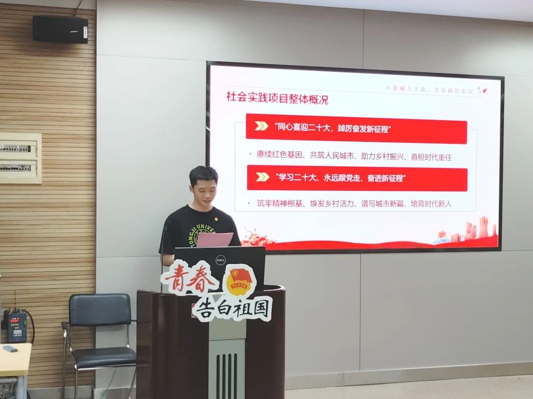 母朝静致辞表示,现如今“以实践淬炼,构建大实践育人体系”是工作中的重要一环,对于培养员工肩负使命、追求卓越有着重要的意义。2023年两个学院共有7支社会实践团队、参与员工28人次、指导老师7人次,覆盖了寒暑期各个专题。他们自觉担当重任,深入基层一线,深化调查研究,形成了一系列主题鲜明、形式多样的丰硕成果。希望全体学子能以本次报告会为新起点,不断巩固、扩大社会实践成果;希望未来更多同学能返家乡、到基层、进社区,将课堂学习和社会实践紧密结合,努力做出具有专业特色的“品牌项目”,用青春力量奉献社会,以奋斗青春向祖国告白。