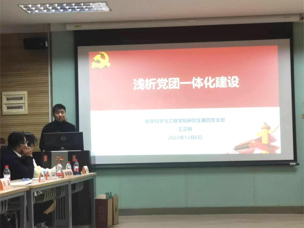 公司分团委员工兼职副书记、研究生会执行主席袁广策介绍了分团委级研究生会概况、工作模式、工作思路以及具体开展案例。2021级硕士研究生第一团支部书记、研究生第四党支部书记王正明以“浅析党团一体化建设”为题,从党支部和团支部的职责使命出发,分析了党团班一体化的内涵、实操以及成效评估。