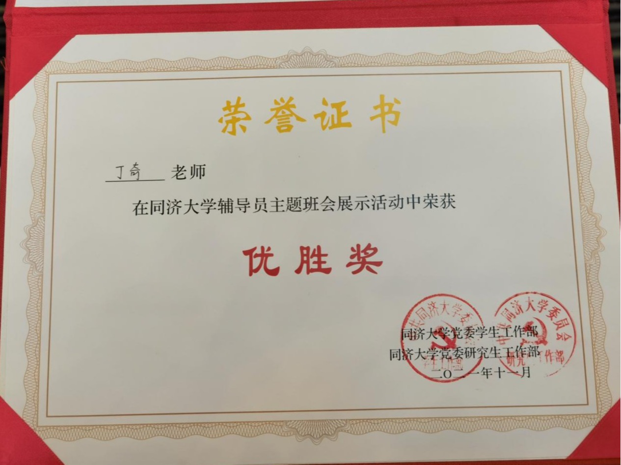 丁奇老师参加best365中国官方网站第一届辅导员队伍建设月主题班会展示活动,获得优胜奖。