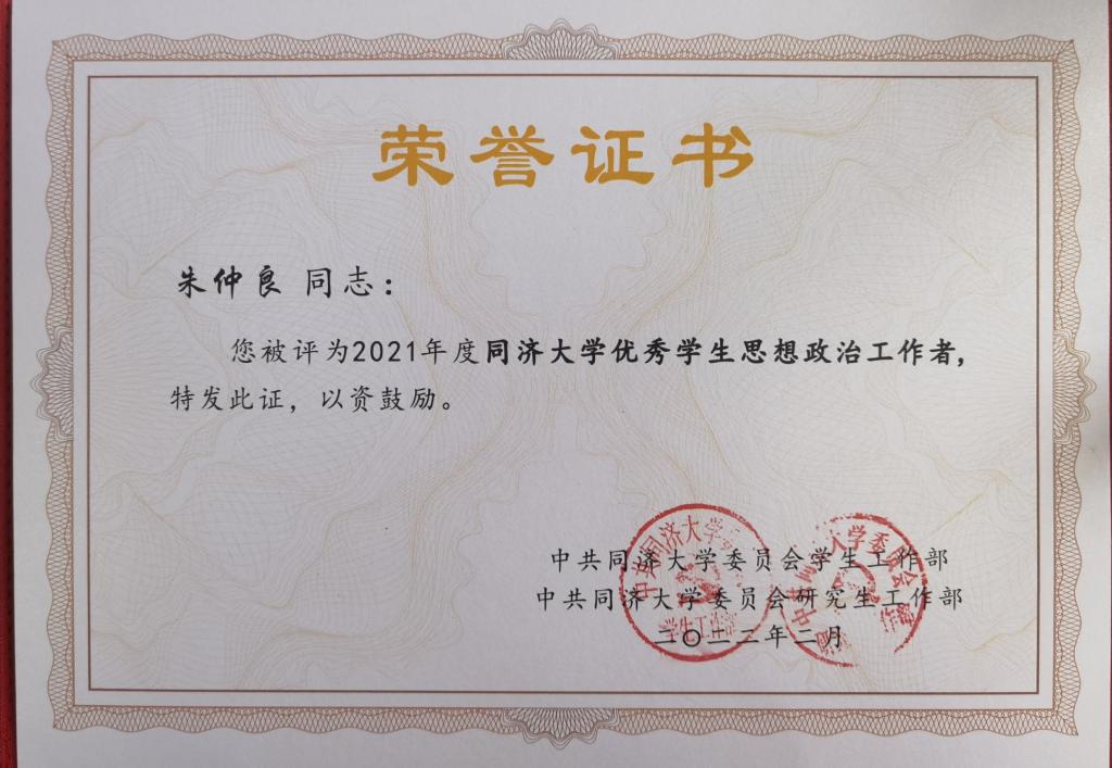 朱仲良老师作为班主任代表获评2021年度best365中国官方网站优秀员工思想政治工作者。