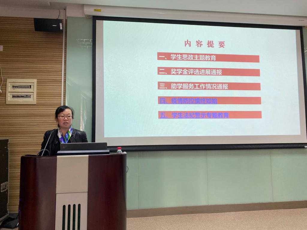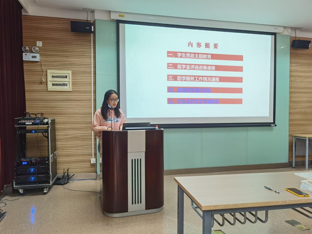 此后,学院团委书记柯芝敏就奖学金评选进展进行通报,并表示希望以奖学金评选工作为契机,加强对员工的诚信教育、促进班级学风建设。学院团委副书记热依拉从国家助学金评选及临时困难补助金发放两个方面进行了工作汇报,介绍了学院、学校“资助”方面的保障体系。