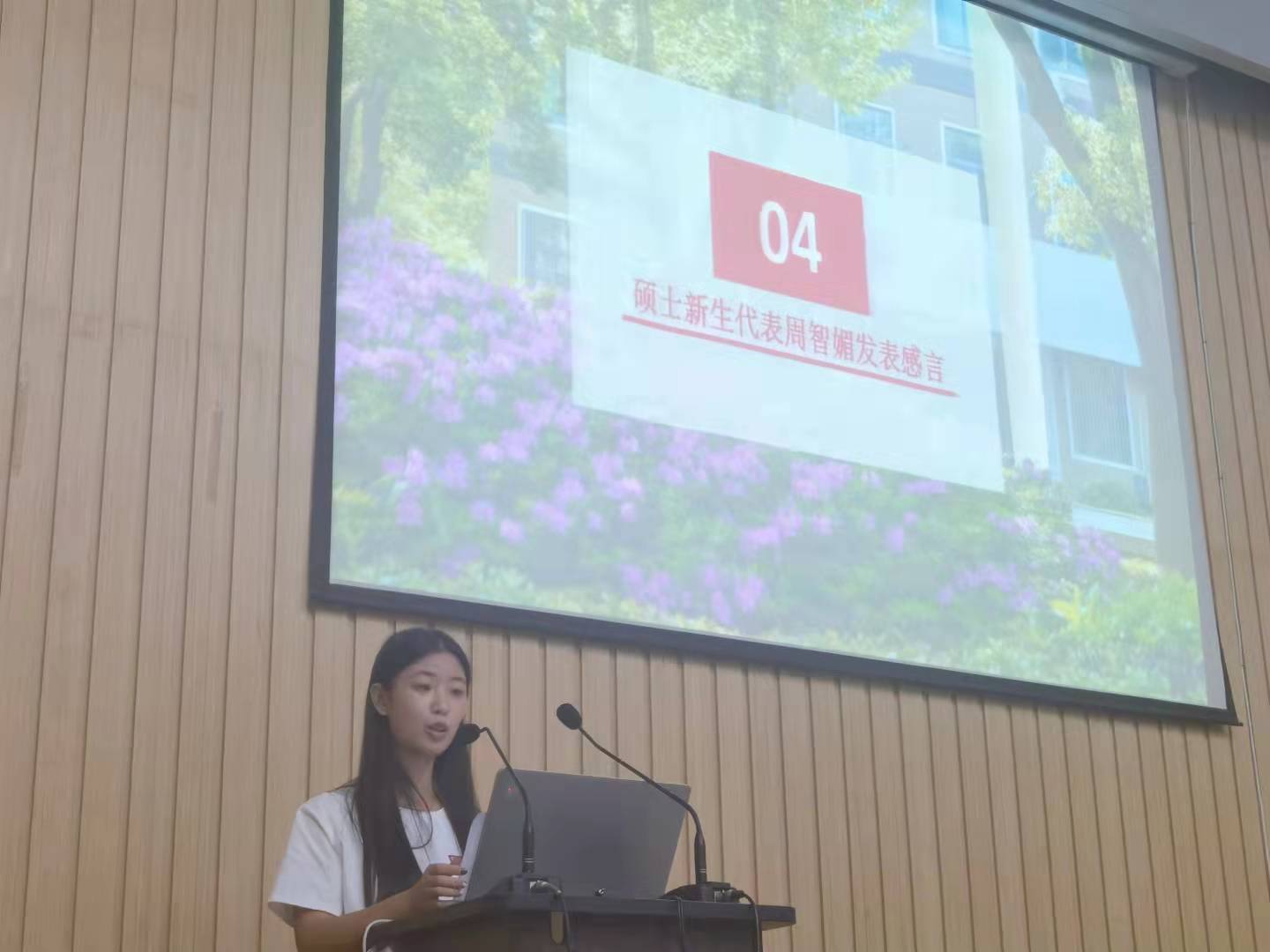 2019级硕士研究生姚孟婷作为老生代表欢迎学弟学妹们,分享了自己在同济的蜕变经历,鼓励学弟学妹们利用好“同济化学”这个平台,实现自我提升。2021级硕士研究生周智媚,2021级博士研究生王冉作为新生代表,分别表达了站在人生新起点上的激动,祝愿所有新生在未来的学习、科研、生活等方面取得优异的成绩,将个人发展与国家战略结合在一起,为建成具有化学品质、同济风格、中国特色的世界一流强院付出自己的一份力量。
