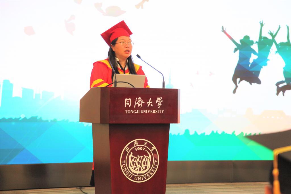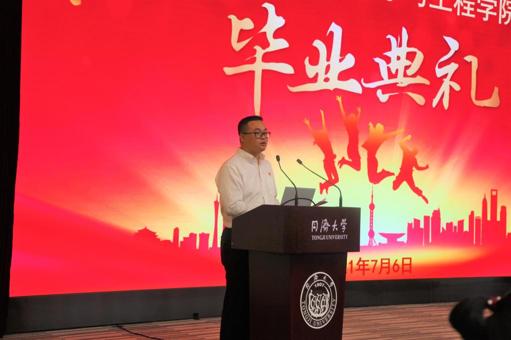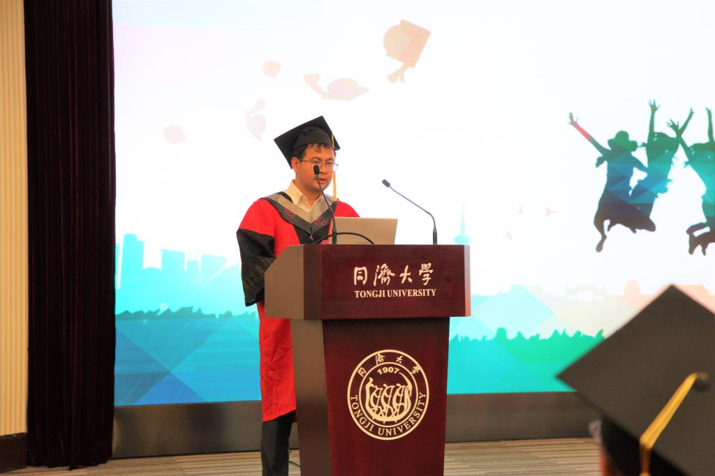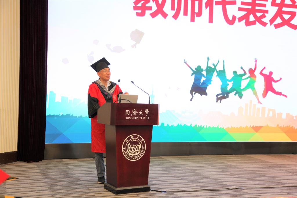 经理张弛教授代表学院对毕业生顺利完成一个阶段的学业表示祝贺,并给毕业生提出殷切期望和要求。他嘱托毕业生无论将来投身哪个领域,不要忘记心中的责任和担当,将同济化学人自强不息的精神延续下去,努力在专业上有所突破,成为社会栋梁。