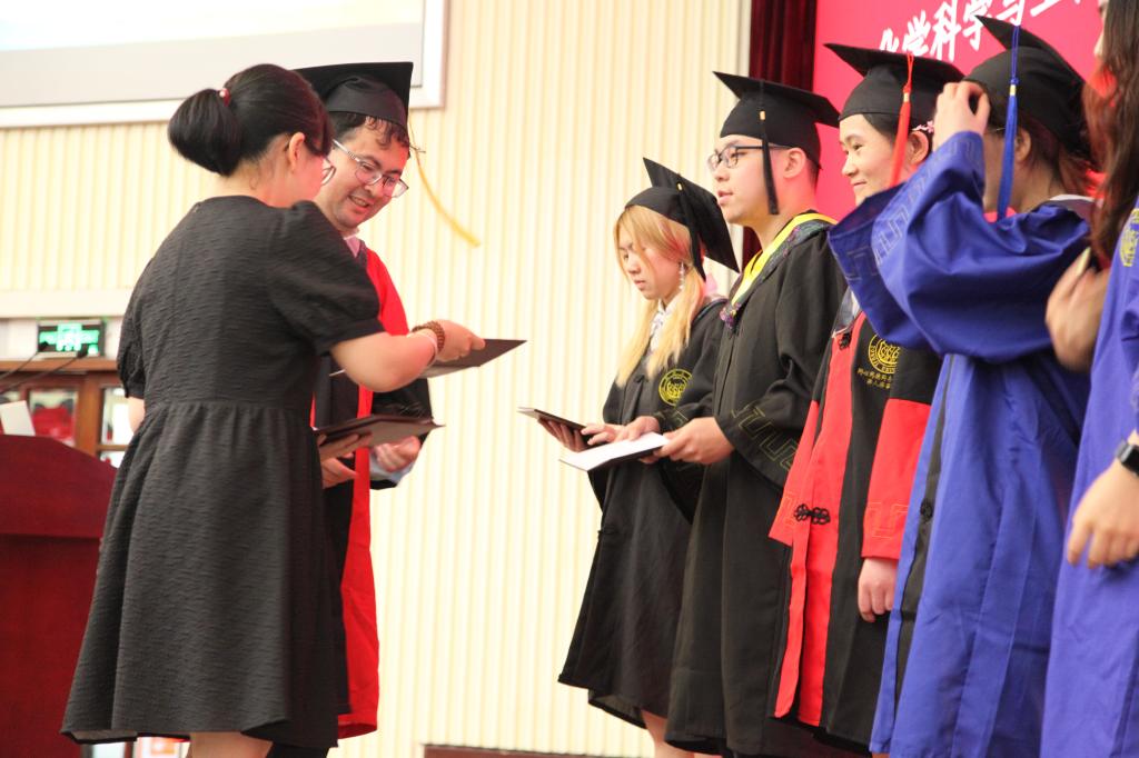 “十数载励志求学,弹指间鲲鹏展翅”,毕业生一一登台,学院领导和教师代表们为毕业生受证拨穗,并合影留念。
