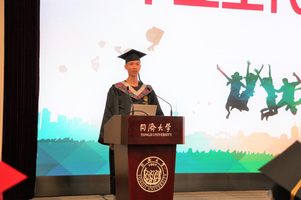 此后,博士毕业生代表滕雪、硕士毕业生肖凡、本科毕业生吴志铭作为员工代表发言。他们分享了自己在同济、在同济化学学习、生活所思所想。表达了对母校和学院悉心培养、搭建起追求卓越的阶梯的感谢;对所有学院老师在学业和生活上的关心与帮助、对同学与好友们陪伴与鼓励的感谢。