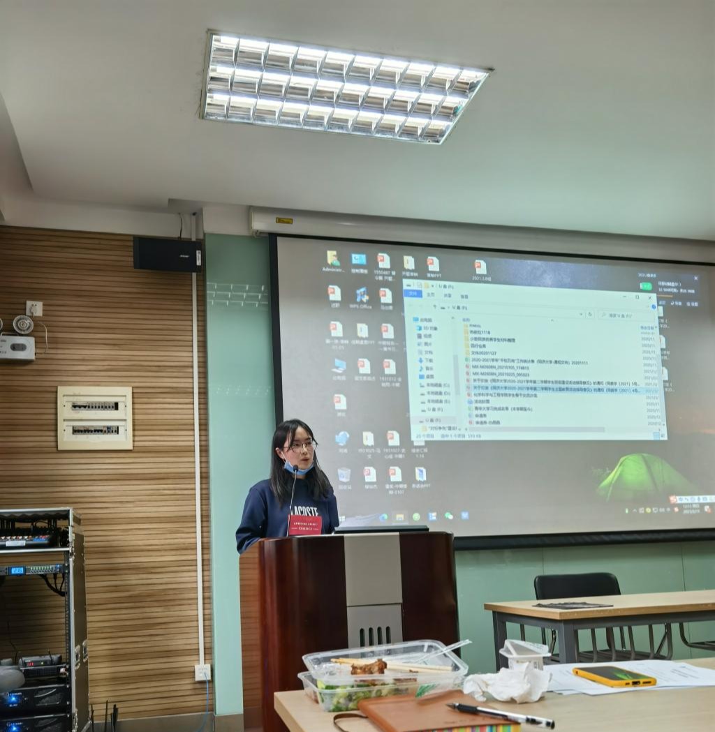 团委书记柯芝敏向各位员工骨干展开了关于本学年即将开展的化学嘉年华暨毕业系列活动、团支部组织生活意见的介绍,再次强调了“学党史、强信念、跟党走”这一方向。