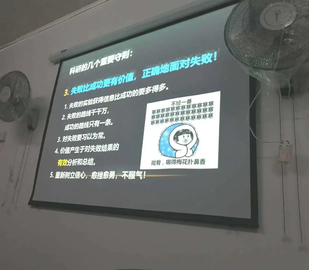 李老师分享的内容有效解答了同学们心中关于未来抉择的疑问,也可以从侧面帮助同学们分析自己是否适合走科研的道路。科研不易,需要毅力与耐心。李老师分享结束后,母老师根据自身经验,谈了几点体会,将活动氛围推向了高潮。同学们纷纷举手,与老师们交流互动,活动室内氛围愉悦。