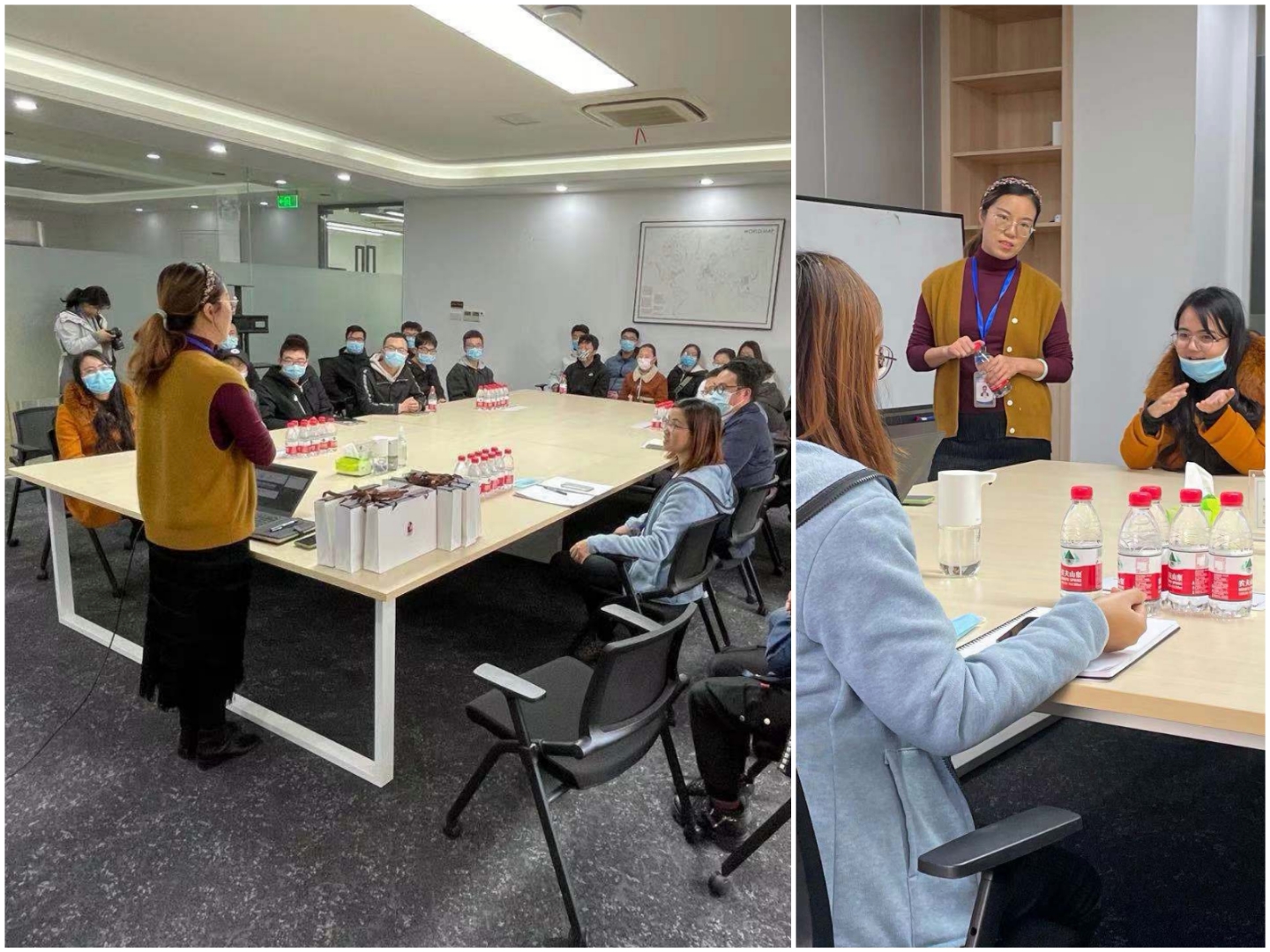 参访伊始,小卫生物科技有限公司工作人员热情欢迎了师生们的到来,并在公司会议室向师生们简单介绍了一下公司现状、业务范围等。值得一提的是,工作人员中有多名同济员工,他们与师生们谈谈自己毕业后的发展、谈谈在校所学与公司所需知识间的联系等,让师生们倍感亲切,也对于自身今后的学习、工作选择有了一些参考。此后,工作人员领着师生们参观了办公区域、研发实验室和制作工厂等,并给师生们介绍、答疑。参观结束后,母老师对今天的参观过程进行了总结,并对小卫科技表示了诚挚的感谢。最后,小卫生物科技有限公司工作人员与全部师生合影留恋。
