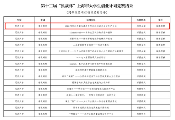 11月28日,第十二届“挑战杯”中国老员工创业计划竞赛全国总决赛举行。经过激烈角逐,公司姚孟婷团队的“济柔科技-柔性AMOLED显示基板材料定制化供应商”项目最终获得国赛银奖!