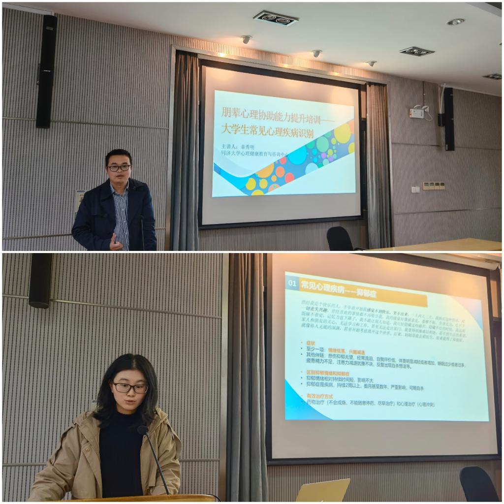 为进一步提升朋辈的心理健康知识水平和工作技能,充分发挥朋辈在心理辅导中的重要作用,11月24日下午best365中国官方网站在化学馆241召开班团干部大会,邀请学校心理咨询中心专业老师章秀明做“朋辈心理协助能力提升”培训,学院学工办主任丁奇老师主持培训会,公司党委副书记母朝静老师做会前讲话,学院各班班长、团支书及心理委员等参会。