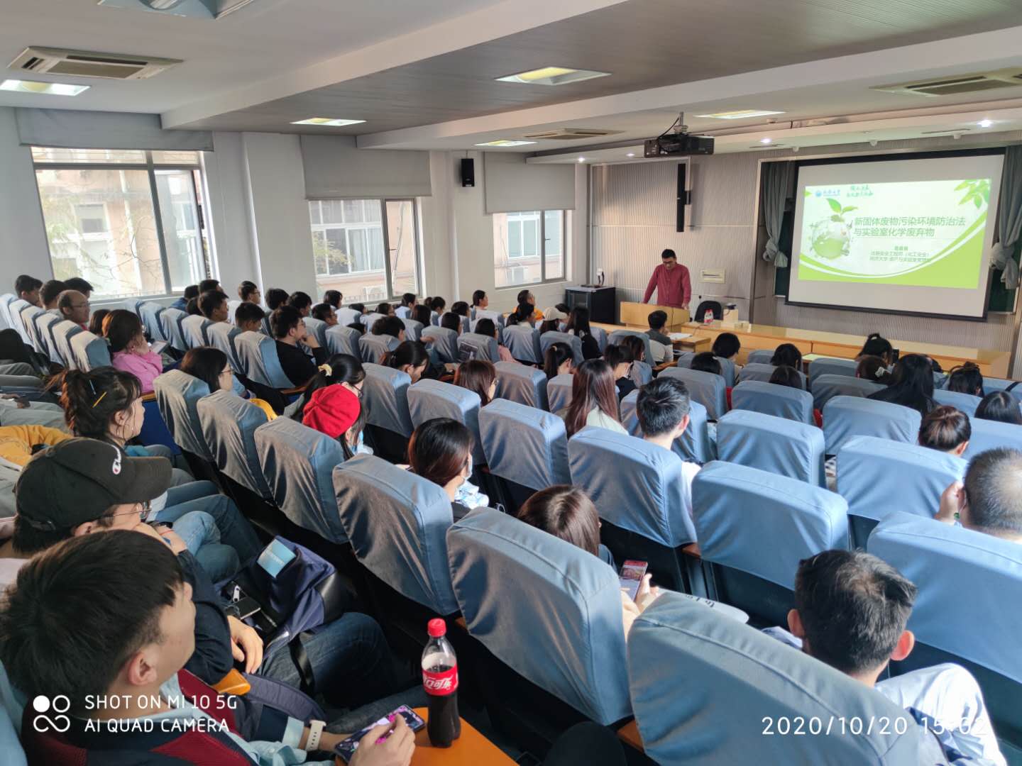 10月20日下午,best365中国官方网站举办《中华人民共和国固体废物污染环境防治法》(2020年修订版)宣传教育解读会,会议以线上线下形式相结合开展,2020级博士研究生、硕士研究生在化学馆241报告厅现场参会,其他各班级同学在ZOOM会议平台上线上参会。