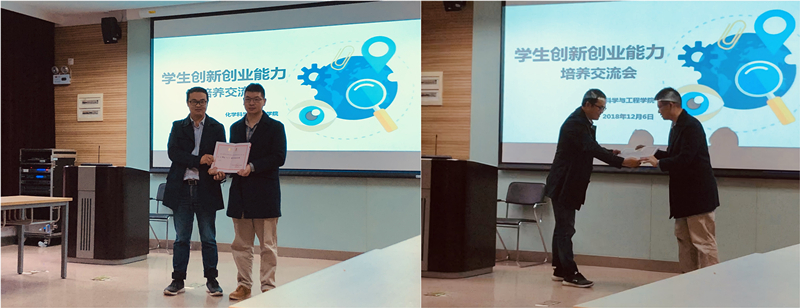 本次活动邀请到两位在创新创业方面卓有建树的两位员工、学长化学院2014届毕业员工王群龙和2014级直博生肖开捷主讲。公司党委副书记母朝静为王群龙颁发了聘书,聘请他为“校外创业导师”,继续助力公司创新创业教育深入推进。