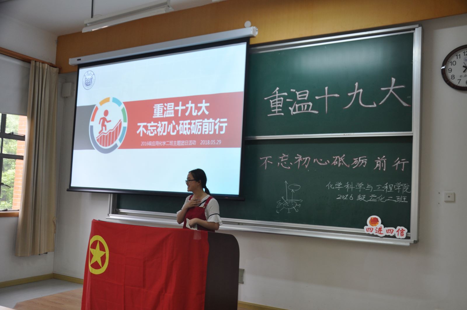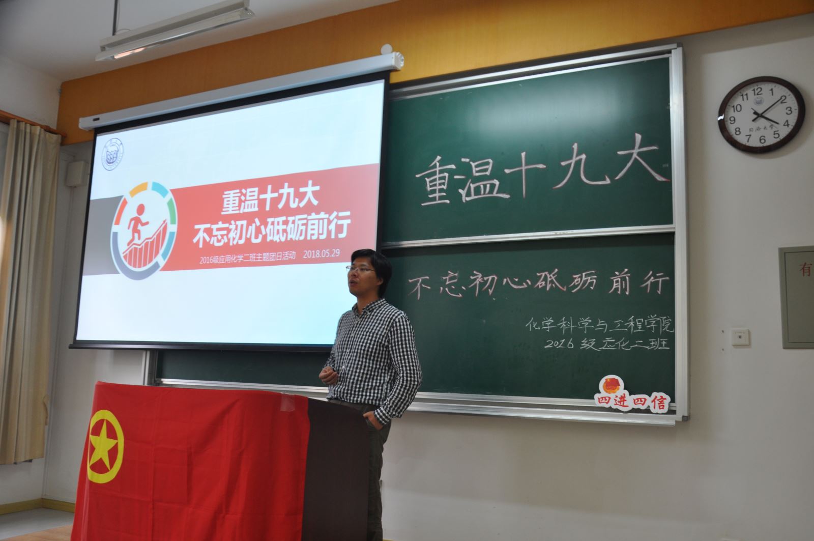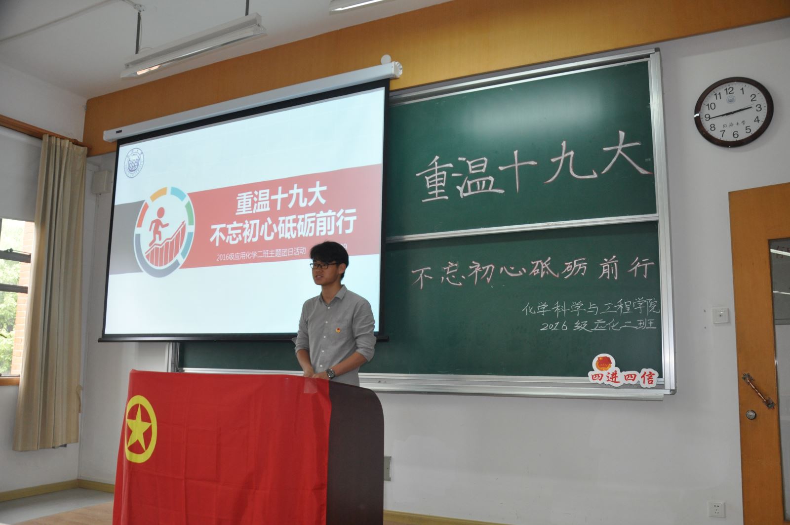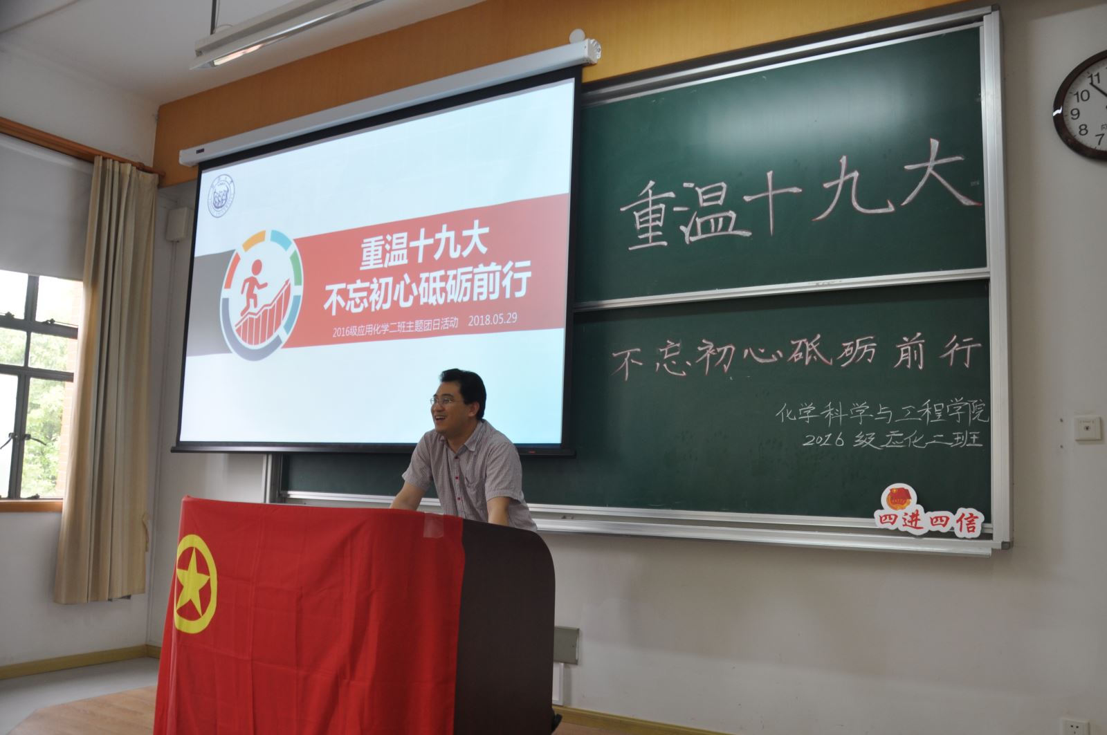 在红色五月的尾巴,best365中国官方网站2016级应化二班团支部在北楼311开展了以“重温十九大,不忘初心,砥砺前行”为主题的活动。主持人查梦欢首先引入了活动的主题以及对于十九大的自我解读,然后请学院五四青年奖章获得者刘明贤教授为我们分享了获奖的心得。