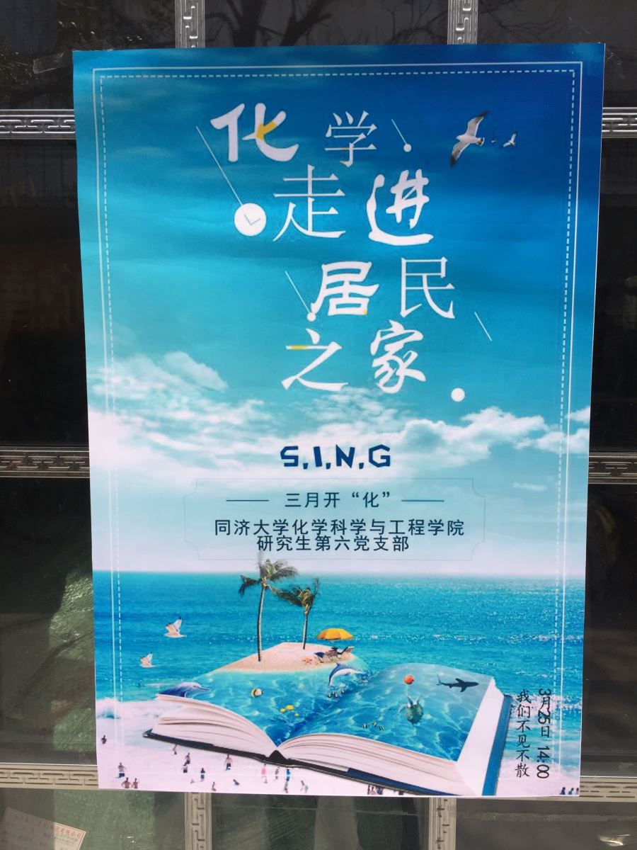 近日,best365中国官方网站研究生第六支部全体党员及积极分子来到同济新村开展了“化学走进居民家”活动,将生活中的化学小知识、小窍门科普带给居民们,以期消除居民对化学的偏见,提高居民辨别真伪科学的能力。