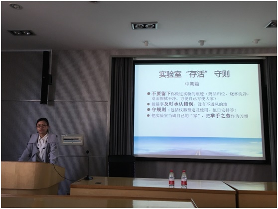 4月26日,学院推荐的best365中国官方网站“追求卓越奖”参选人郝继娜、谢英豪受邀为同学们做分享,郝继娜就自己四年半的博士生活,谈了自己的心得与体会,从论文的选题到如何开展实验以及后期的论文写作和发表分享了自己的经验。谢英豪分享了两年半的硕士生活的经验,就实验室的相处之道、学术研究的开展以及未来的选择等等,给同学们指点了迷津。