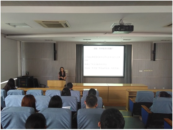 4月13日,国家奖学金获得者陆玲玮、优秀研究生干部甘源向同学们分享了他们研究生生涯中的点点滴滴,陆玲玮把她从研一到研二的成长轨迹做了详细的介绍,包括与实验室同学和谐共处的心得、发论文的技巧等;甘源着重介绍了他的求职历程,包括每个阶段分别需要做什么准备、同学之间信息共享的重要性、暑期实习的重要性等,并且鼓励同学们,“找工作是一个漫长的过程,春招中找到好工作也是很有可能的,不到最后不能放弃。”