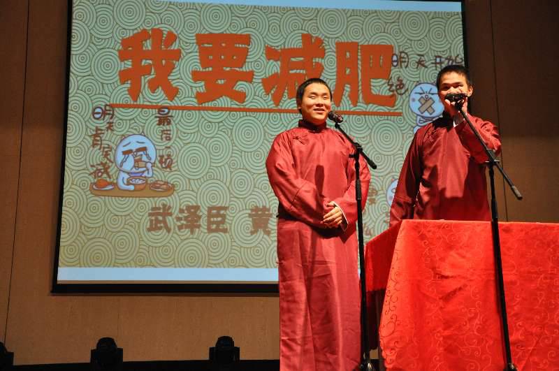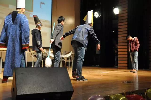 第三篇章:As,锋芒张扬,系怀天下! 由本科生刘文博带来的魔术表演让人大呼过瘾,甚至让人有了智商碾压的感觉。大一新生带来的小品《劫法场》,凄惨的囚犯,嚣张的官员,用生命抢戏的刽子手,别样的生离死别,赚足了现场师生的笑声。在大学总会碰到些不顺心的事情,可不管怎样,我们都不能放弃,勇敢的走下去。大一的三名男生以一首《稻香》,送给他们的室友,也是当天的男主持,作为他的生日礼物。