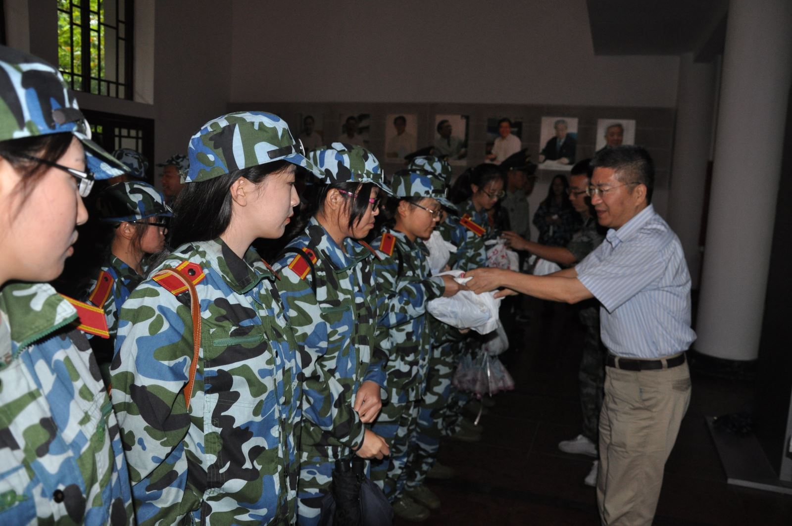当天,恰逢雨天,军训师生在教学南楼进行室内训练,9:30参训师生在南楼大厅整队集合,王国强书记代表公司党政向参训教官和随训教师表示真诚的感谢,感谢他们在训练场上严格要求又细心照顾公司员工,让员工通过军训达到了规范纪律、提升意志品质的目的。同时,王书记祝贺参训员工通过军训取得的进步和成绩,也向同学们反馈了教官和随训教师对他们的认真参训给予的表扬。随后,王国强书记向在场的教官、随训教师和参训员工一一送上学院精心准备的慰问品。